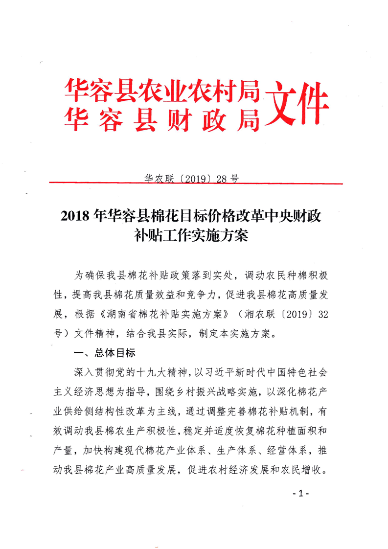 2018年棉花补贴工作实施方案