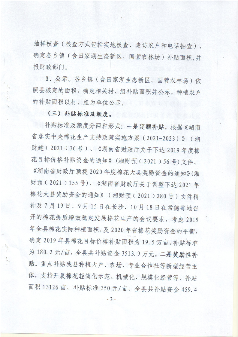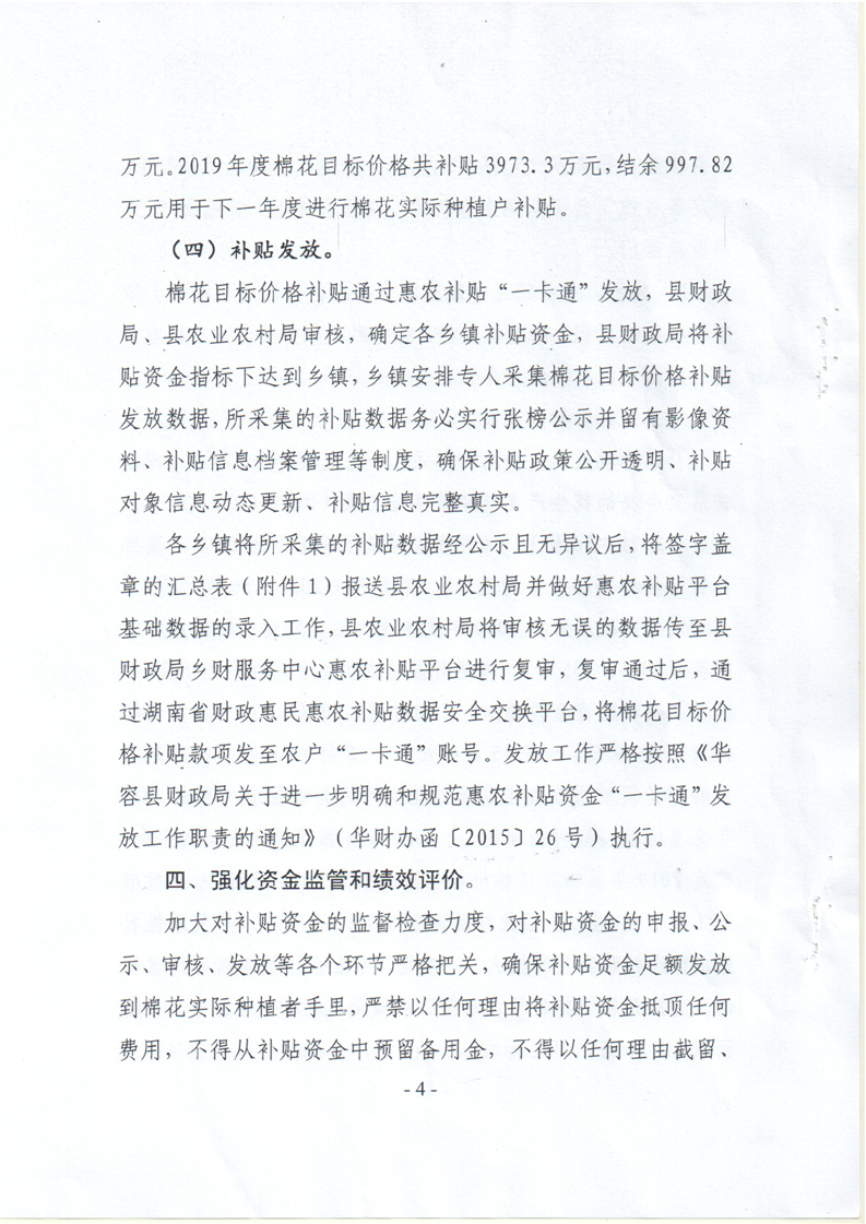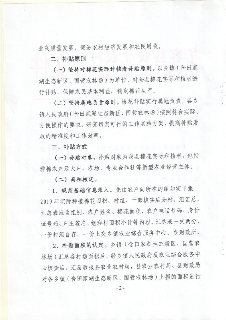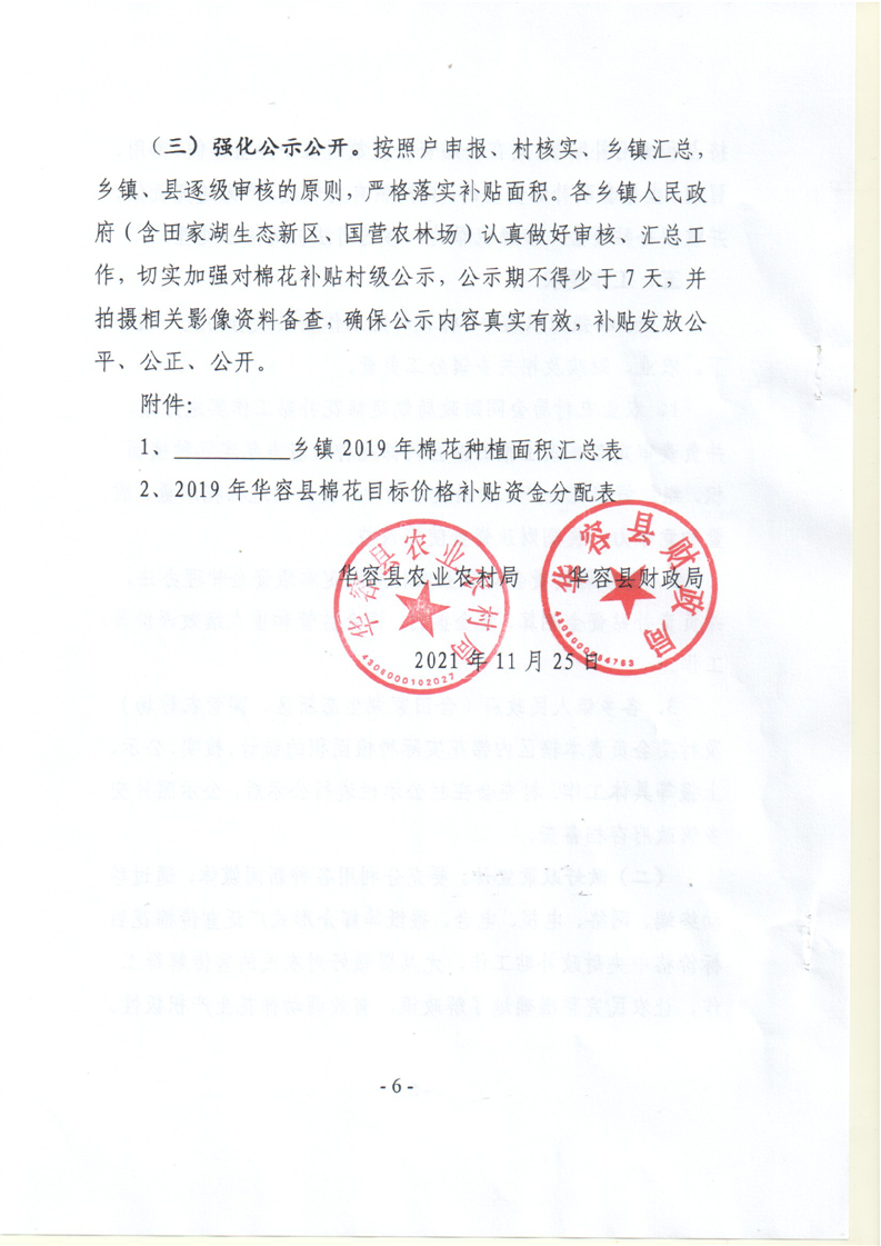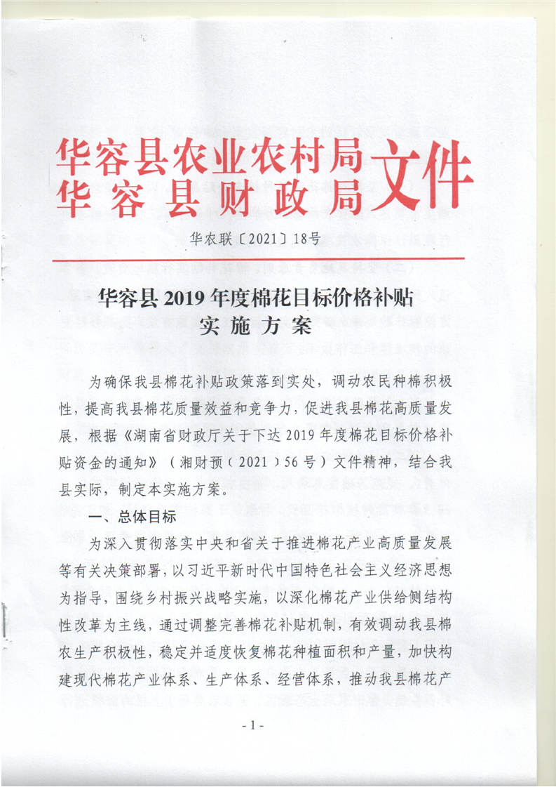 华容县2019年度棉花目标价格补贴