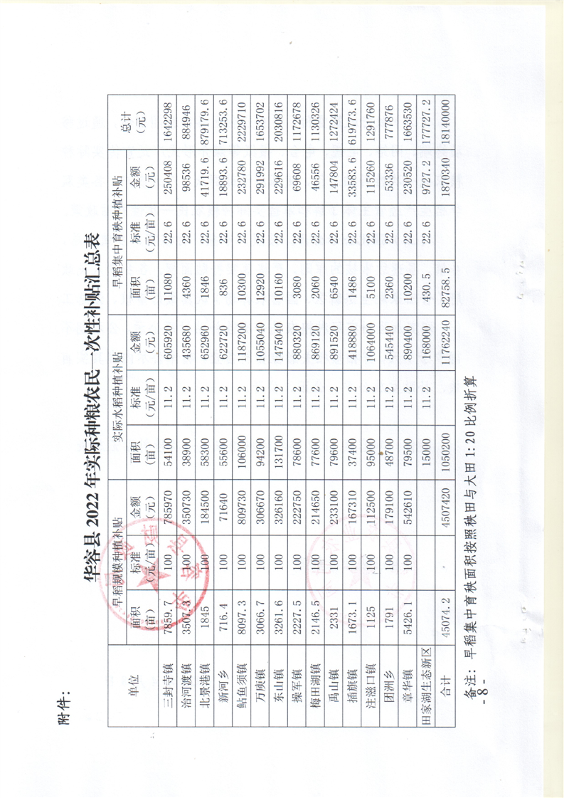 华容县2022年实际种粮农民一次性补贴实施方案(第一批)