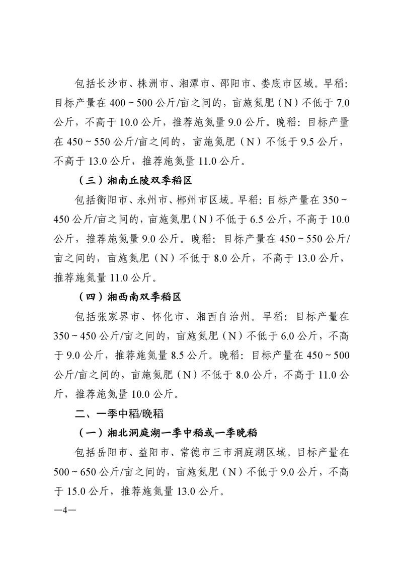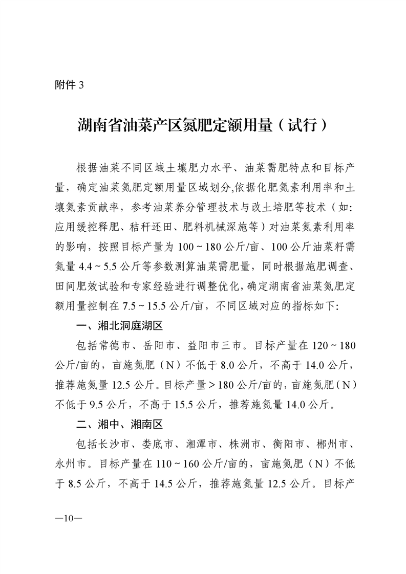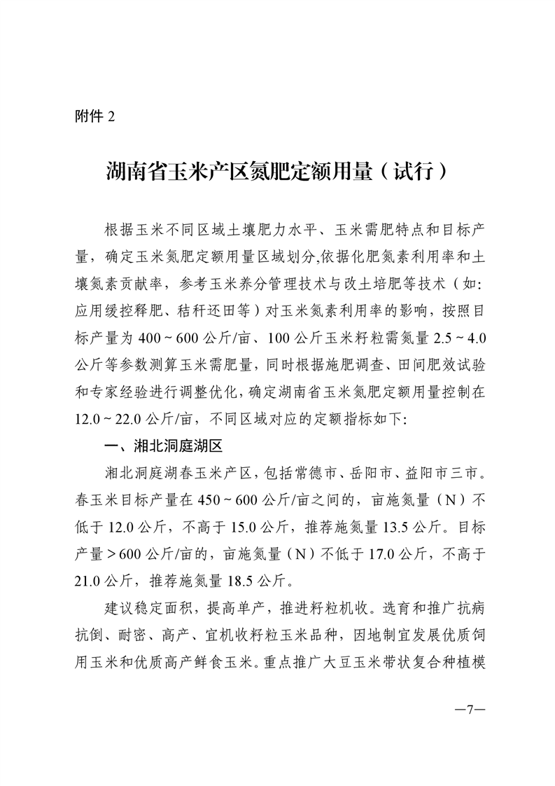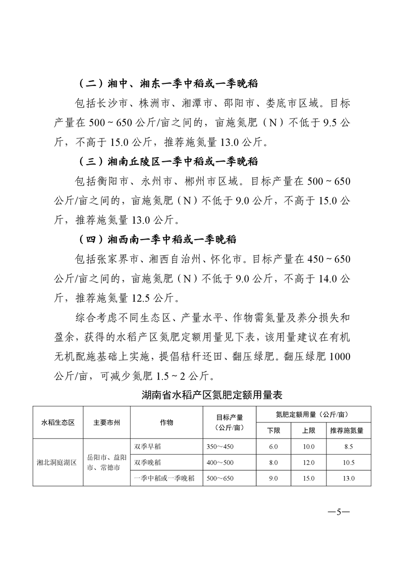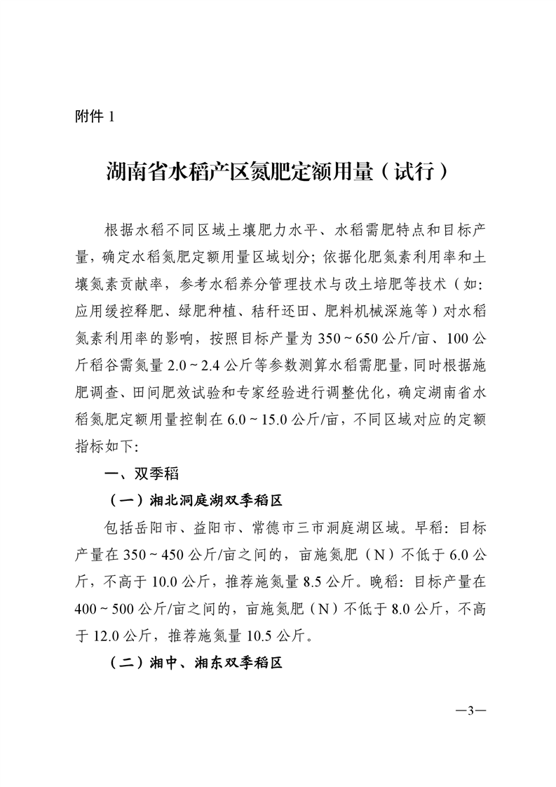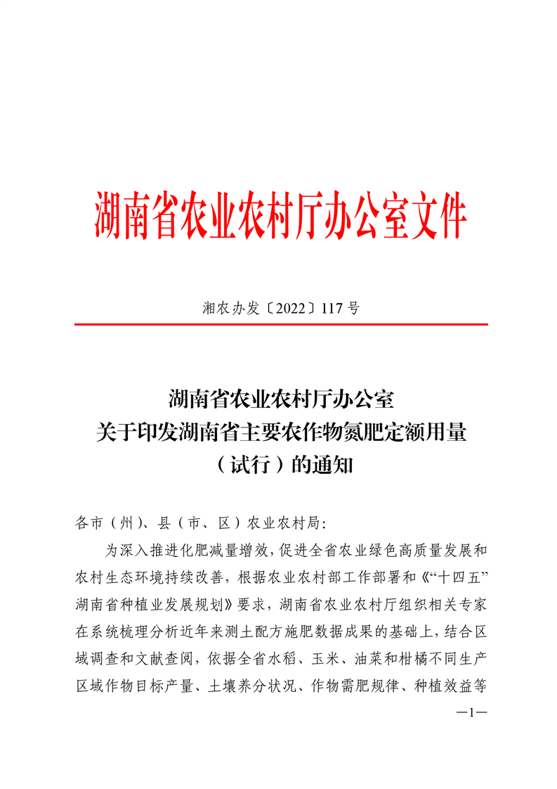 关于印发湖南省主要农作物氮肥定额用量(试行)的通知