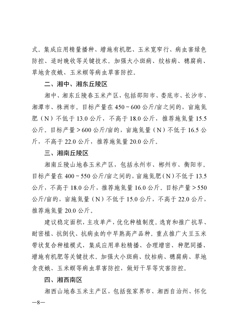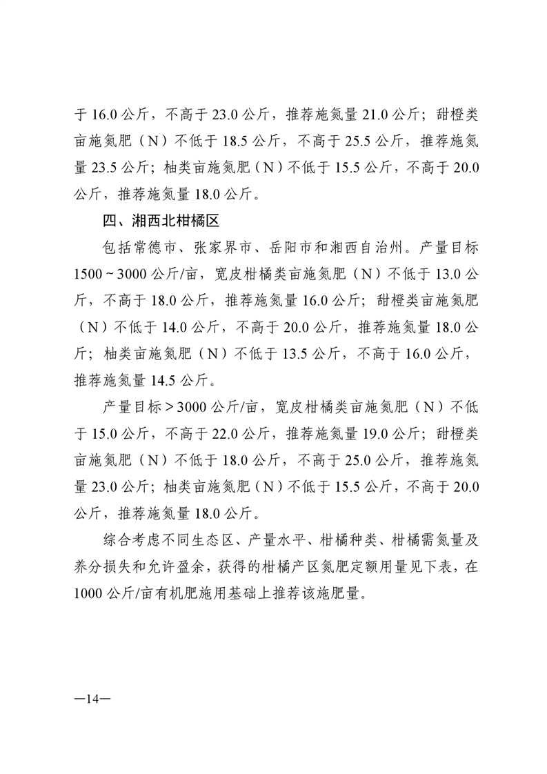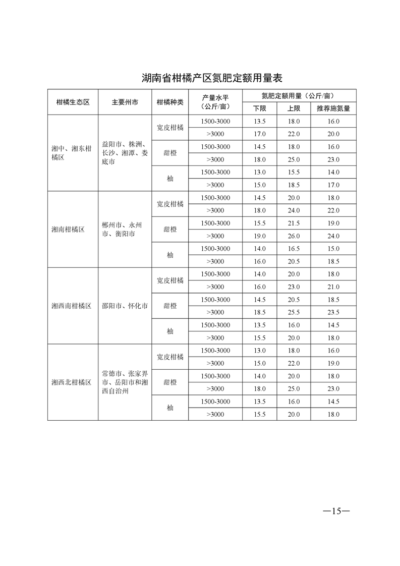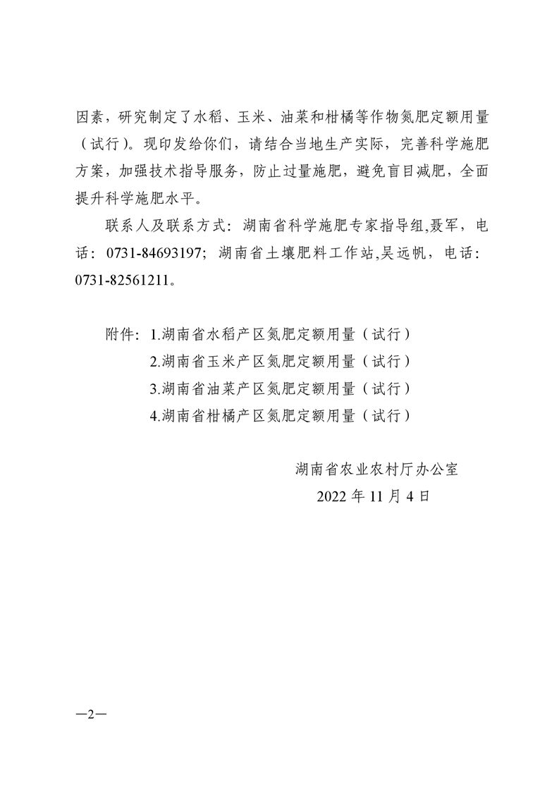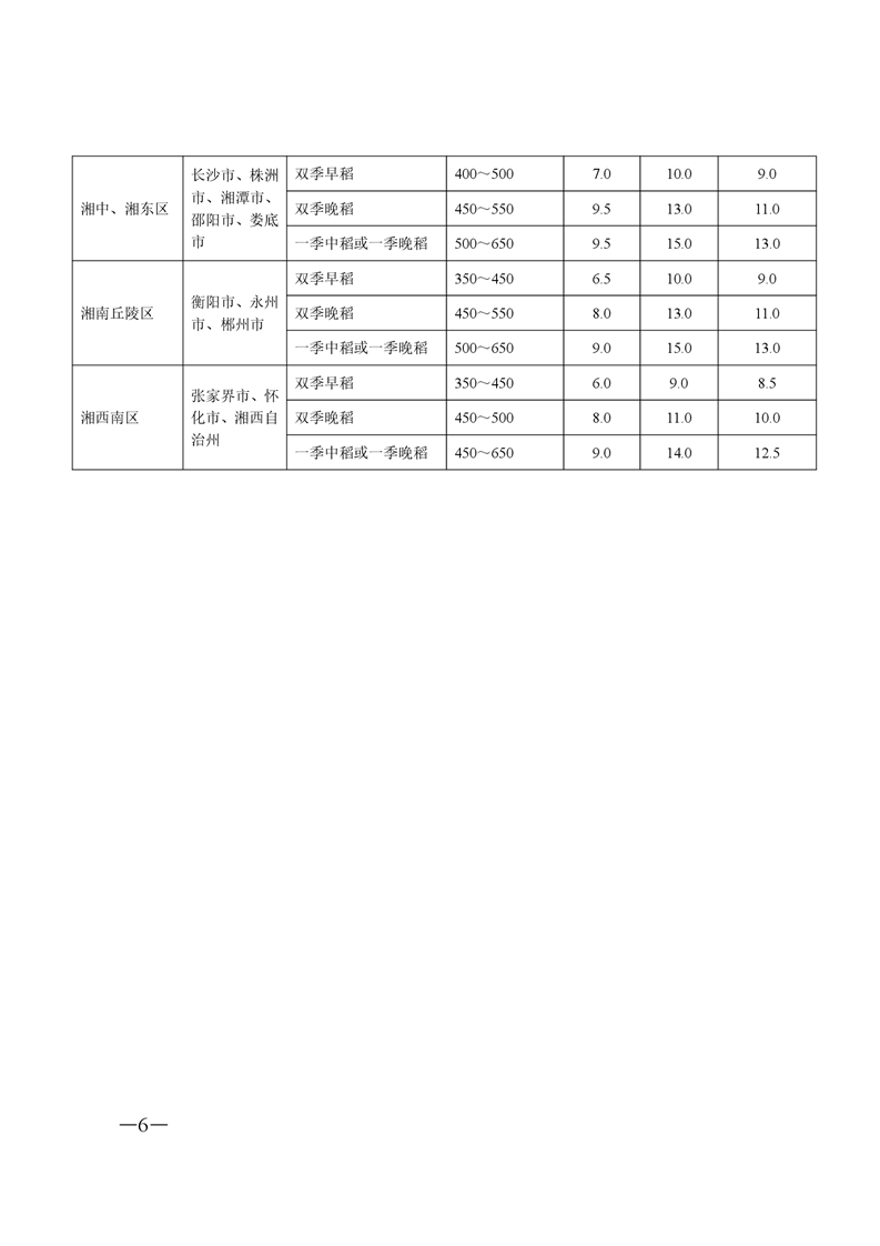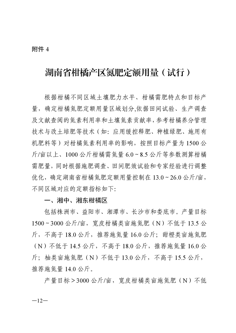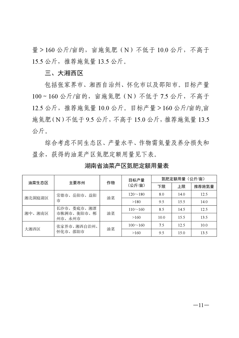 关于印发湖南省主要农作物氮肥定额用量(试行)的通知