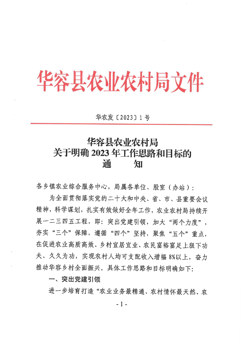 华容县农业农村局关于明确2023年工作思路和目标的通知
