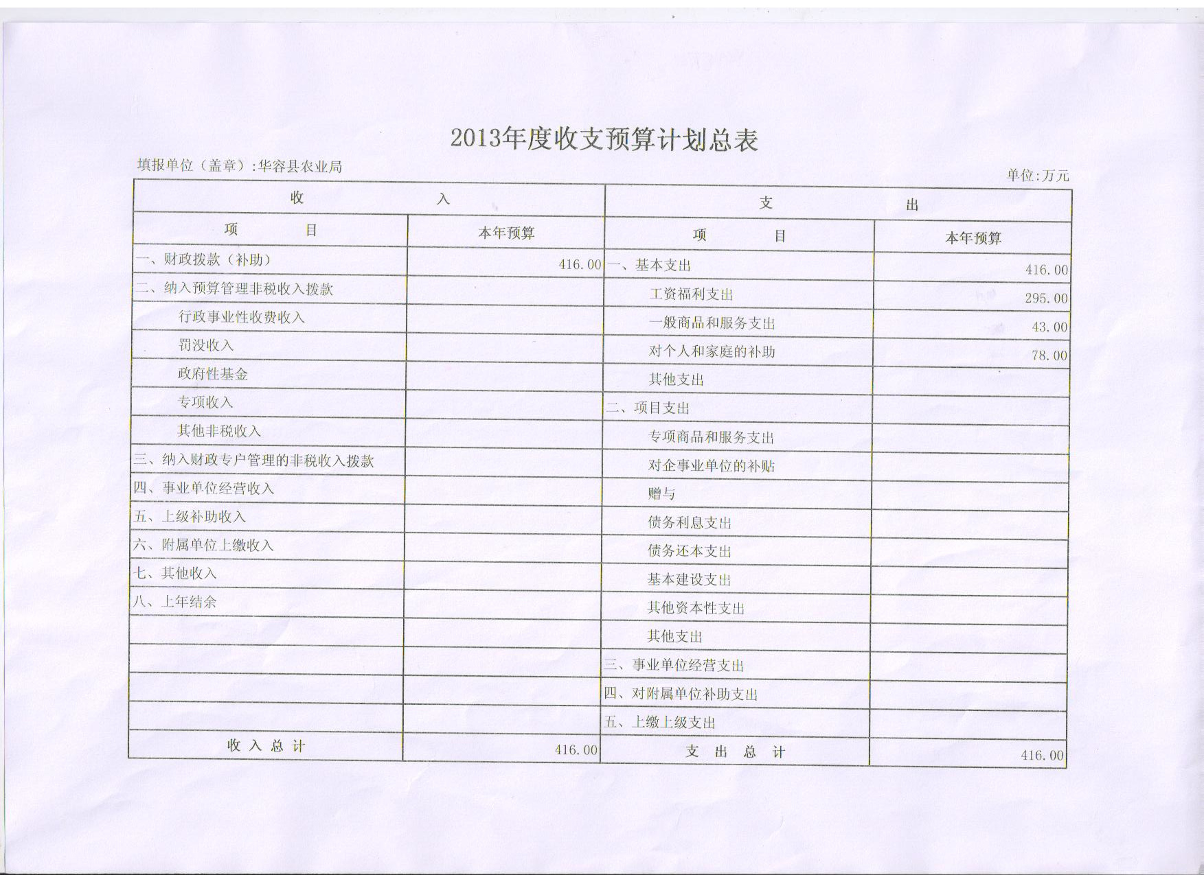 2013年度收支预算计划总表