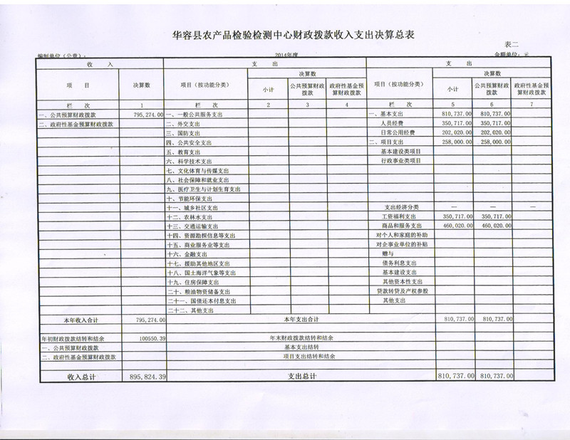 华容县农产品检验检测中心财政拨款收入支出决算总表