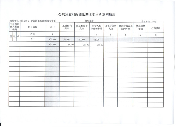 华容县生态能源服务中心公共预算财政拨款基本支出决算表