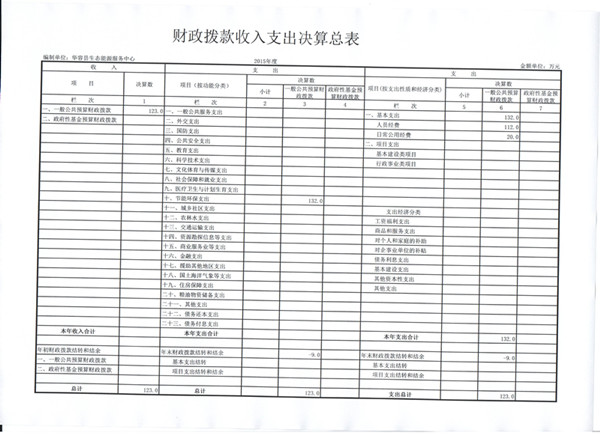 华容县生态能源服务中心财政拨款收入支出决算总表