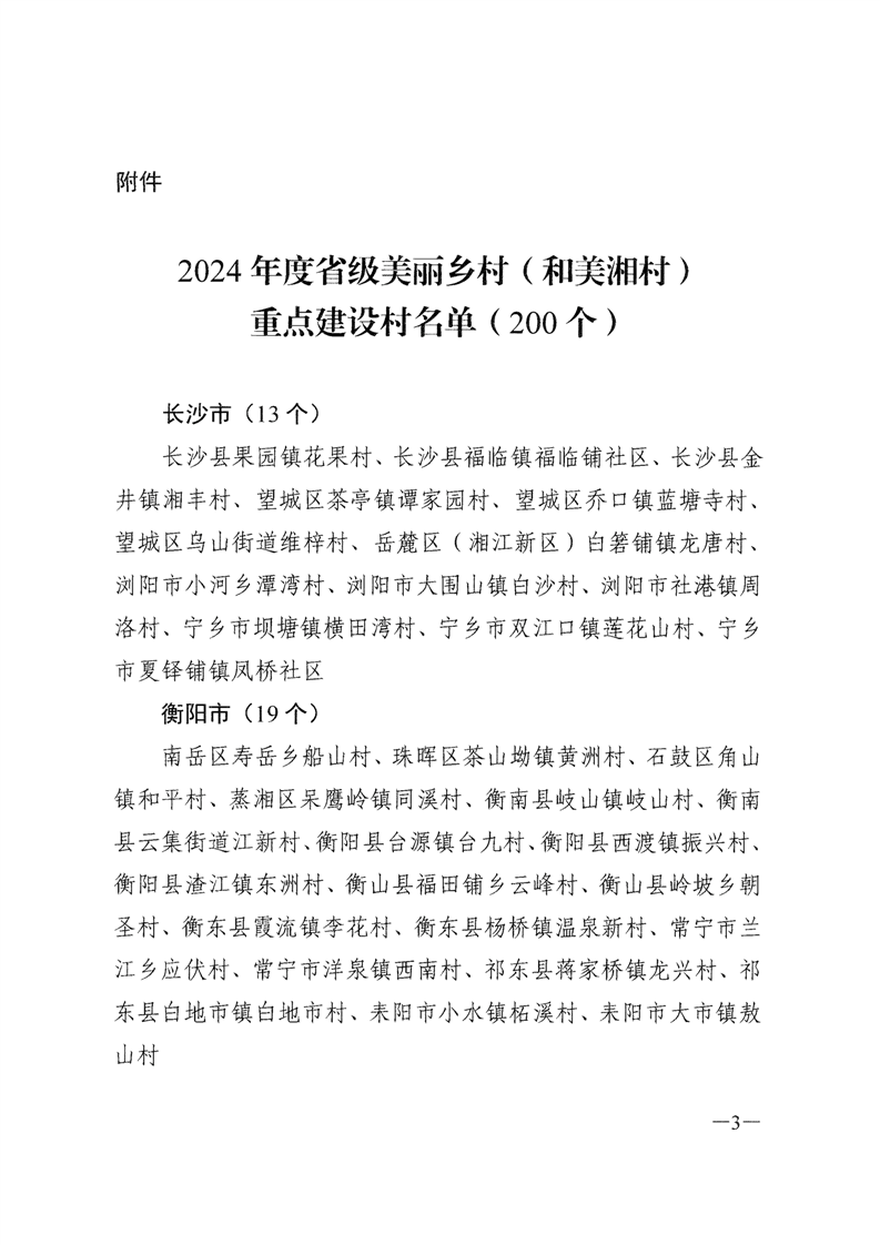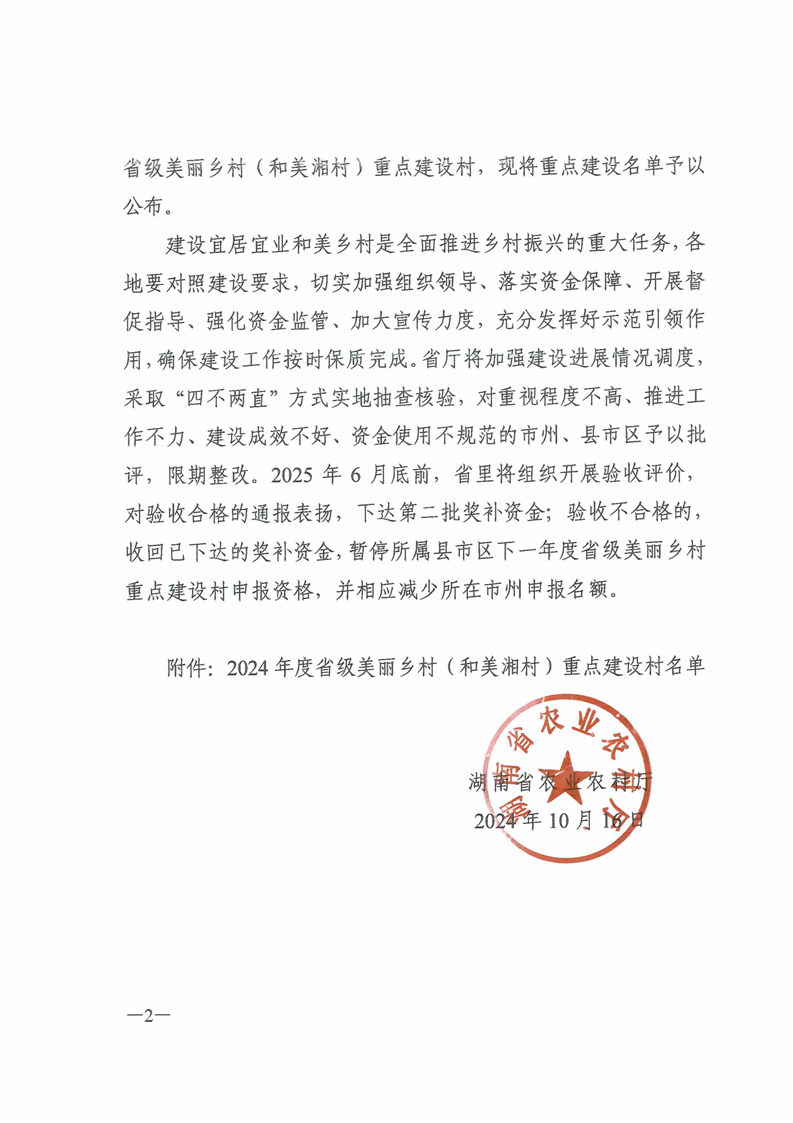 2024年第六批省级财政衔接推进乡村振兴补助资金-和美湘村重点建设项目200万元