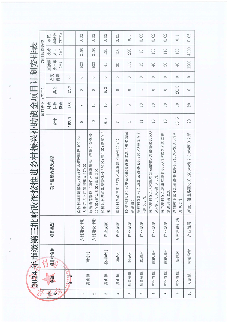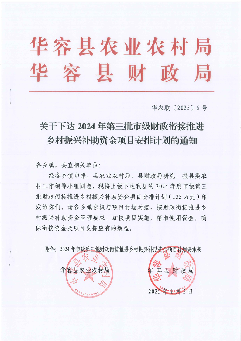 华农联(2025)5号-关于下达2024年第三批市级财政衔接推进乡村振兴补助资金项目安排计划的通知-135W