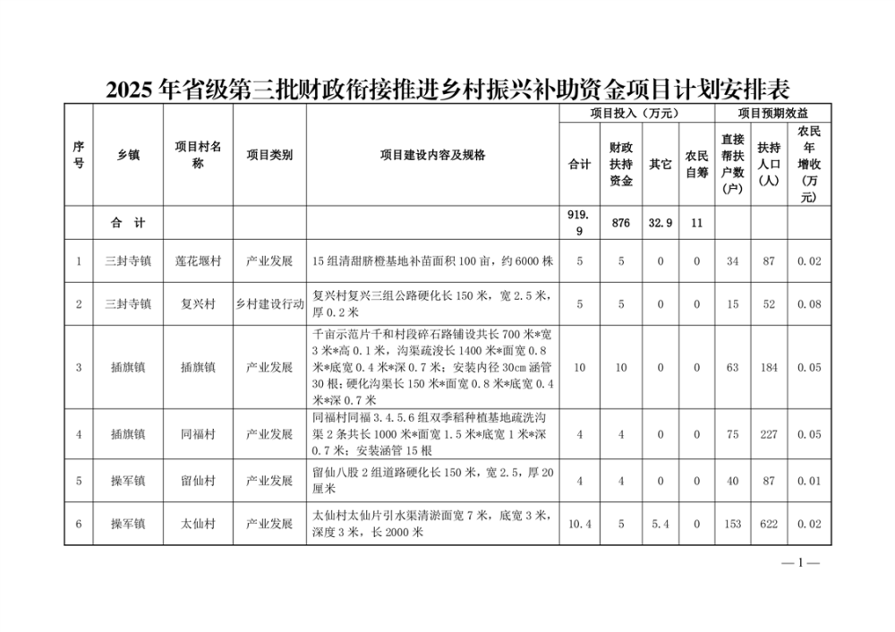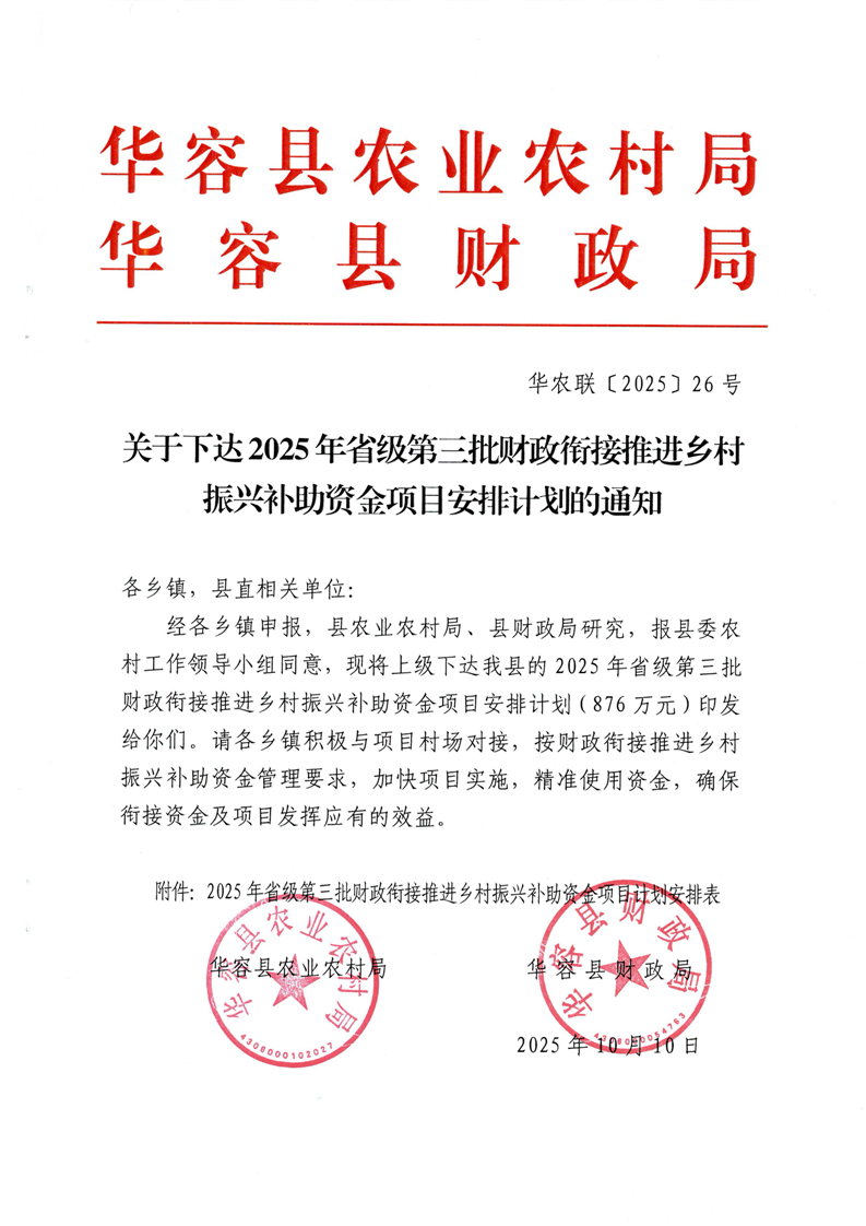 华农联(2025)26号-关于下达2025年省级第三批财政衔接推进乡村振兴补助资金项目安排计划的通知-876W