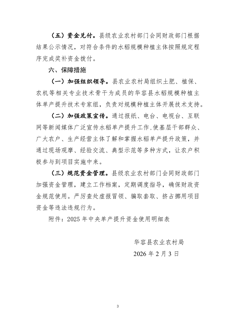 华容县2025年开展水稻规模种植主体单产提升资金使用方案