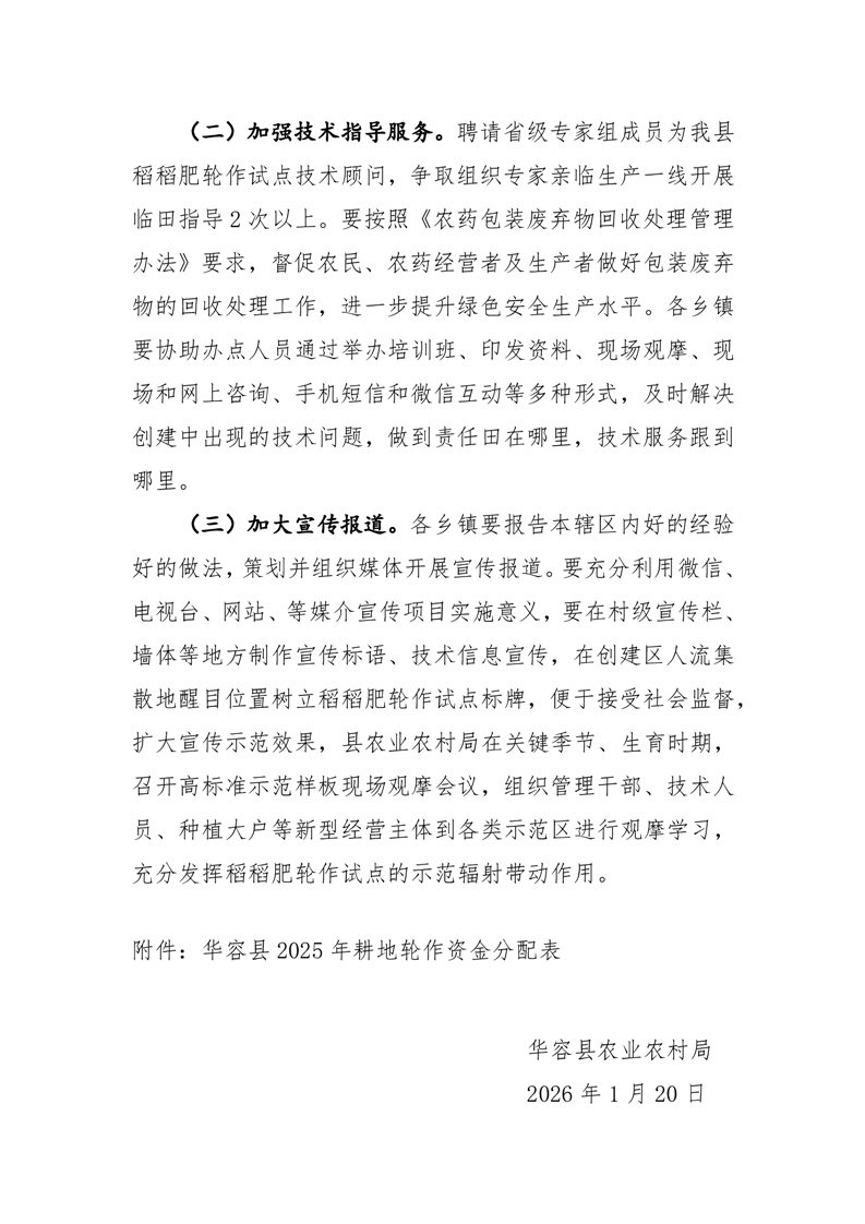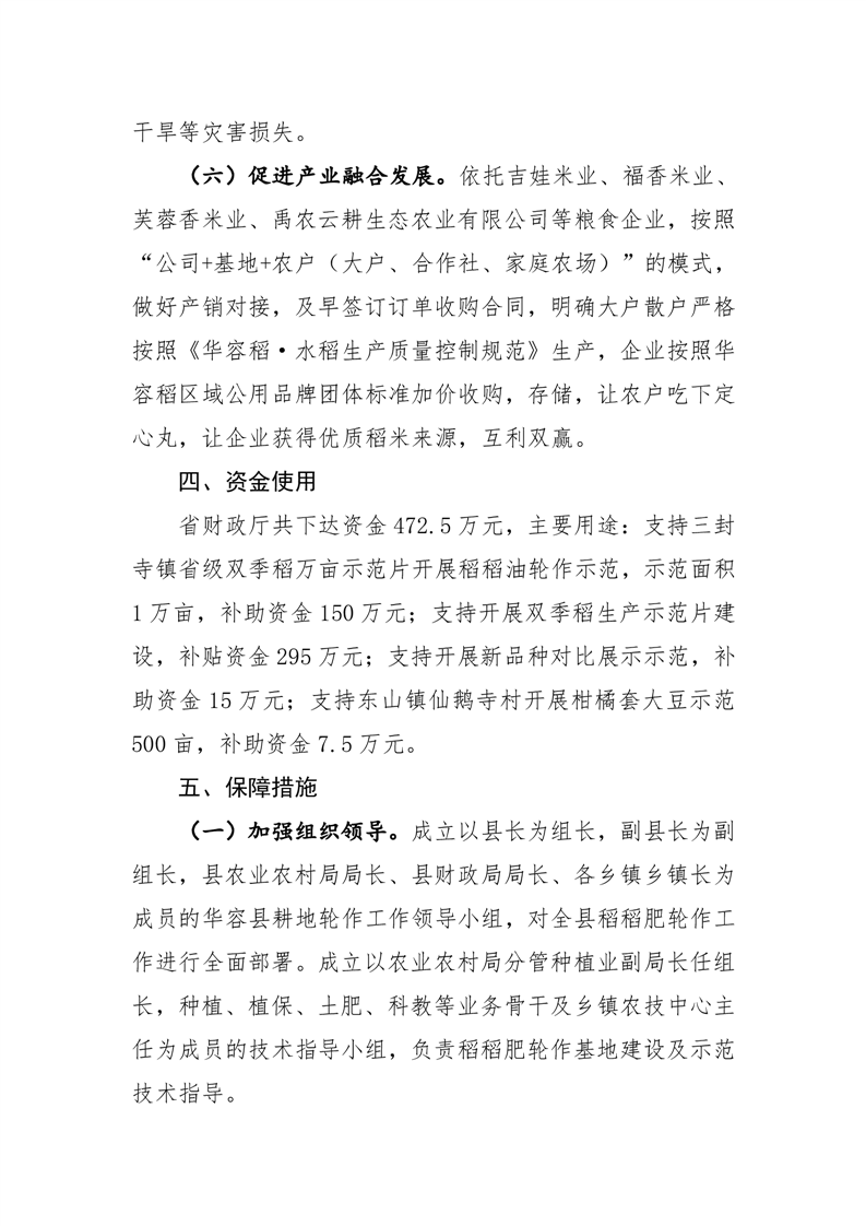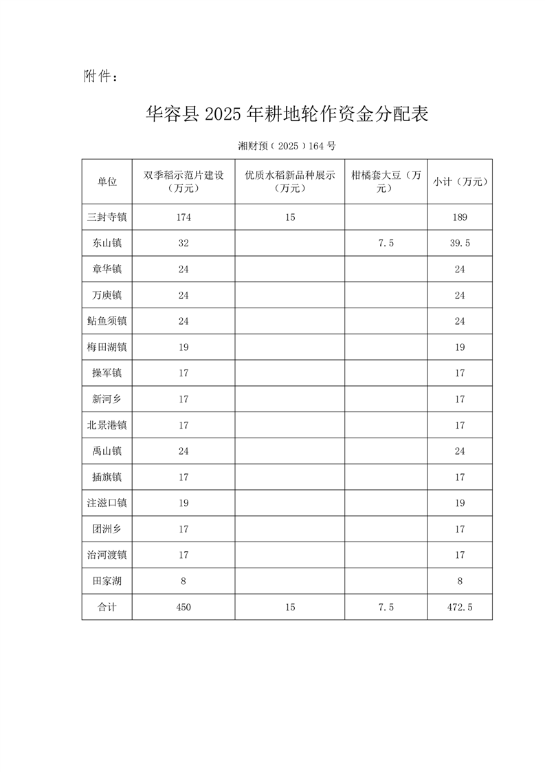 华容县2025年中央耕地轮作资金使用方案