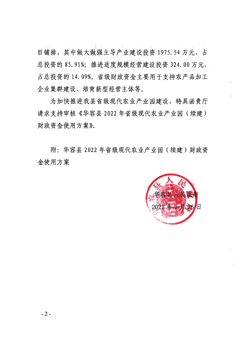 关于支持审核《华容县2022年省级现代农业产业园财政资金使用方案(续建)》的函