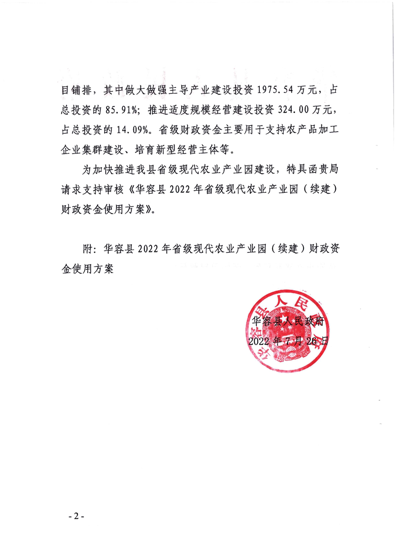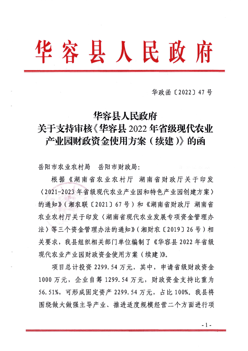 关于支持审核《华容县2022年省级现代农业产业园财政资金使用方案(续建)》的函(市局)