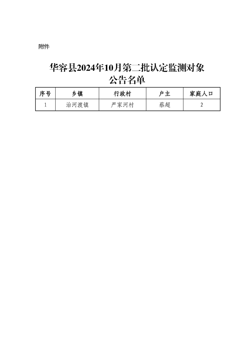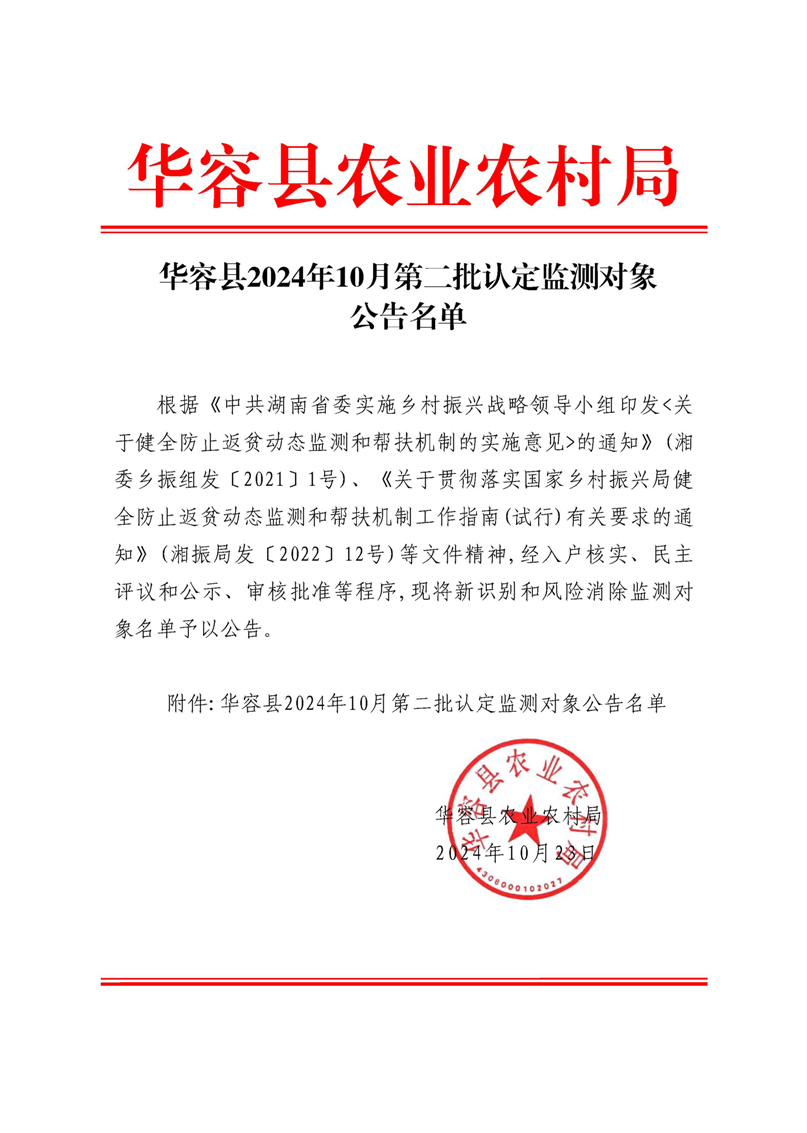 华容县2024年10月第二批认定监测对象公告名单