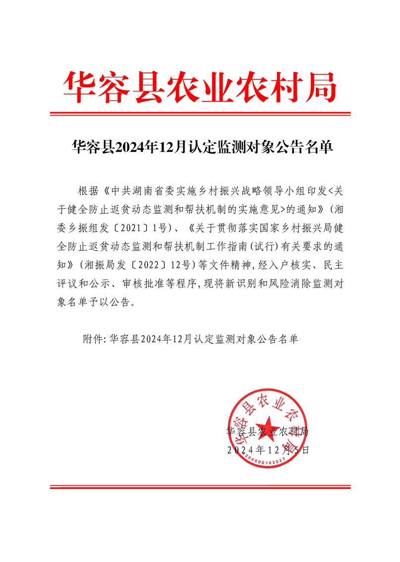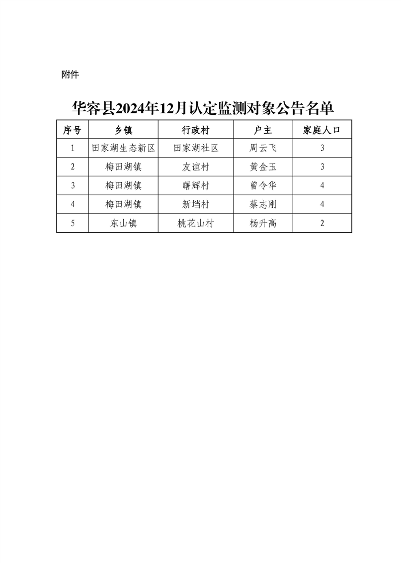 华容县2024年12月认定监测对象公告名单