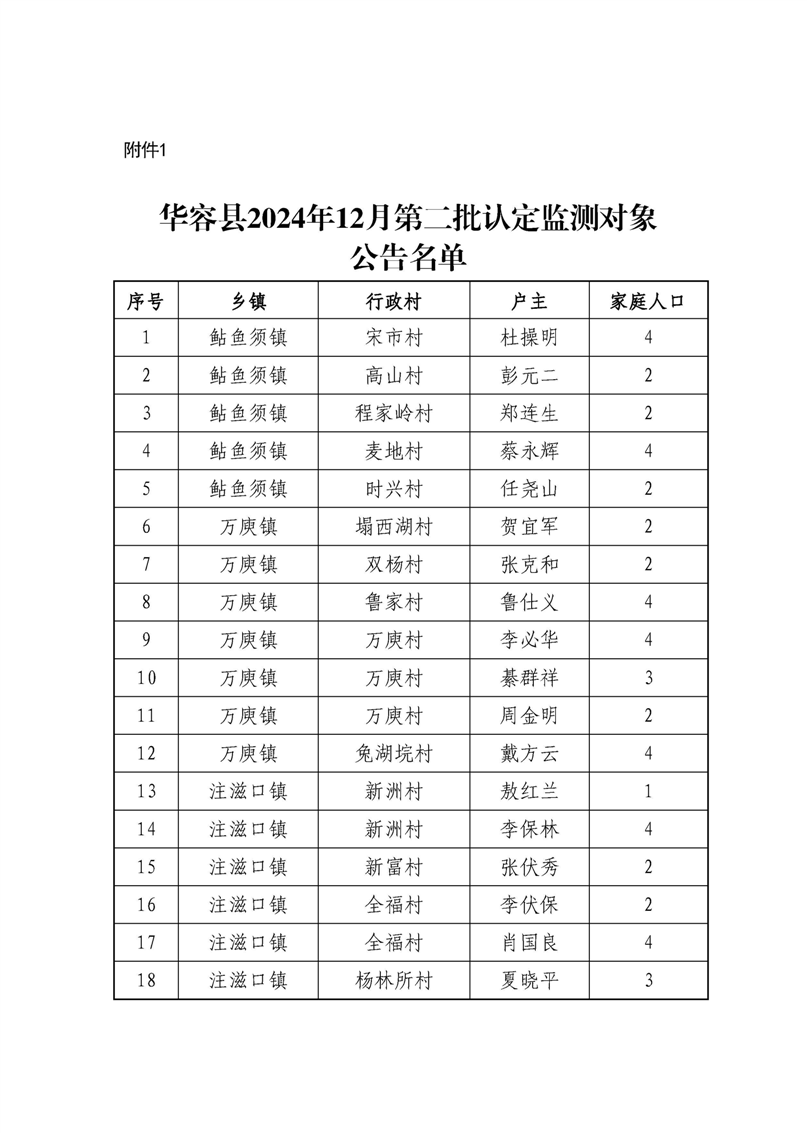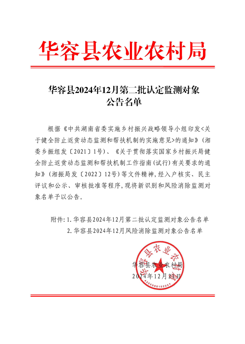 华容县2024年12月第二批认定和风险消除监测对象公告名单