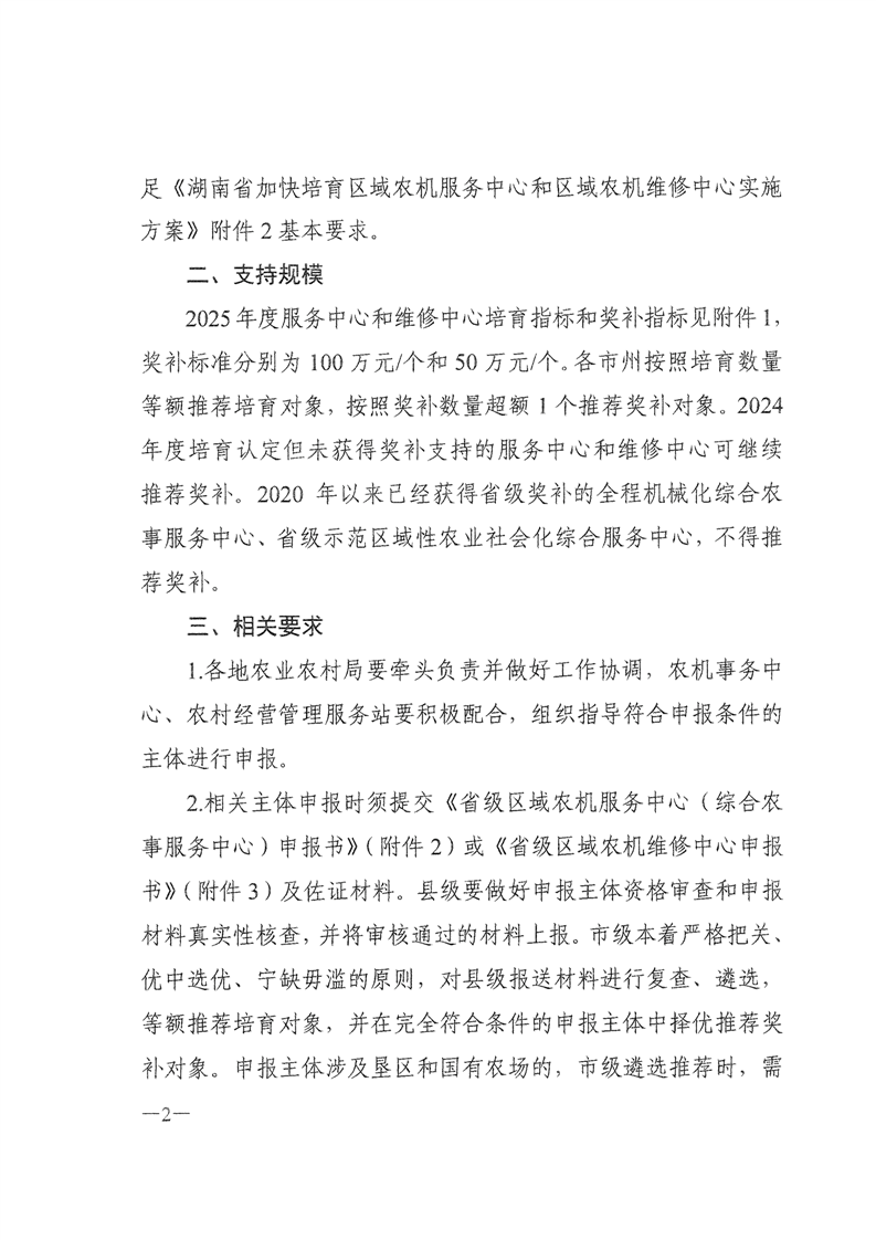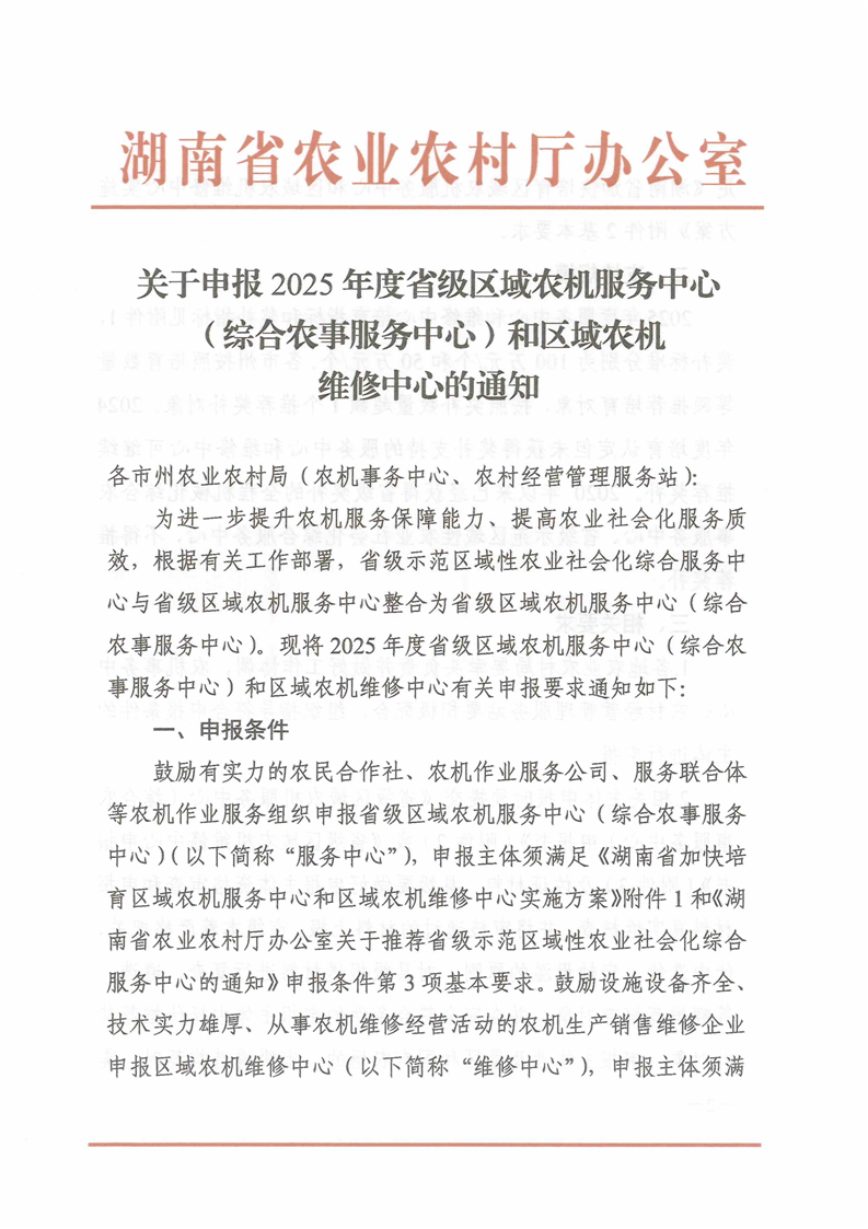 关于申报2025年度省级区域农机服务中心(综合农事服务中心)和区域农机维修中心的通知