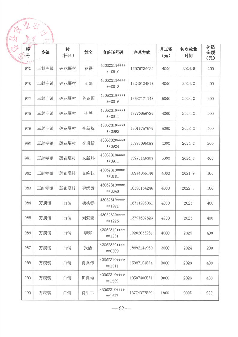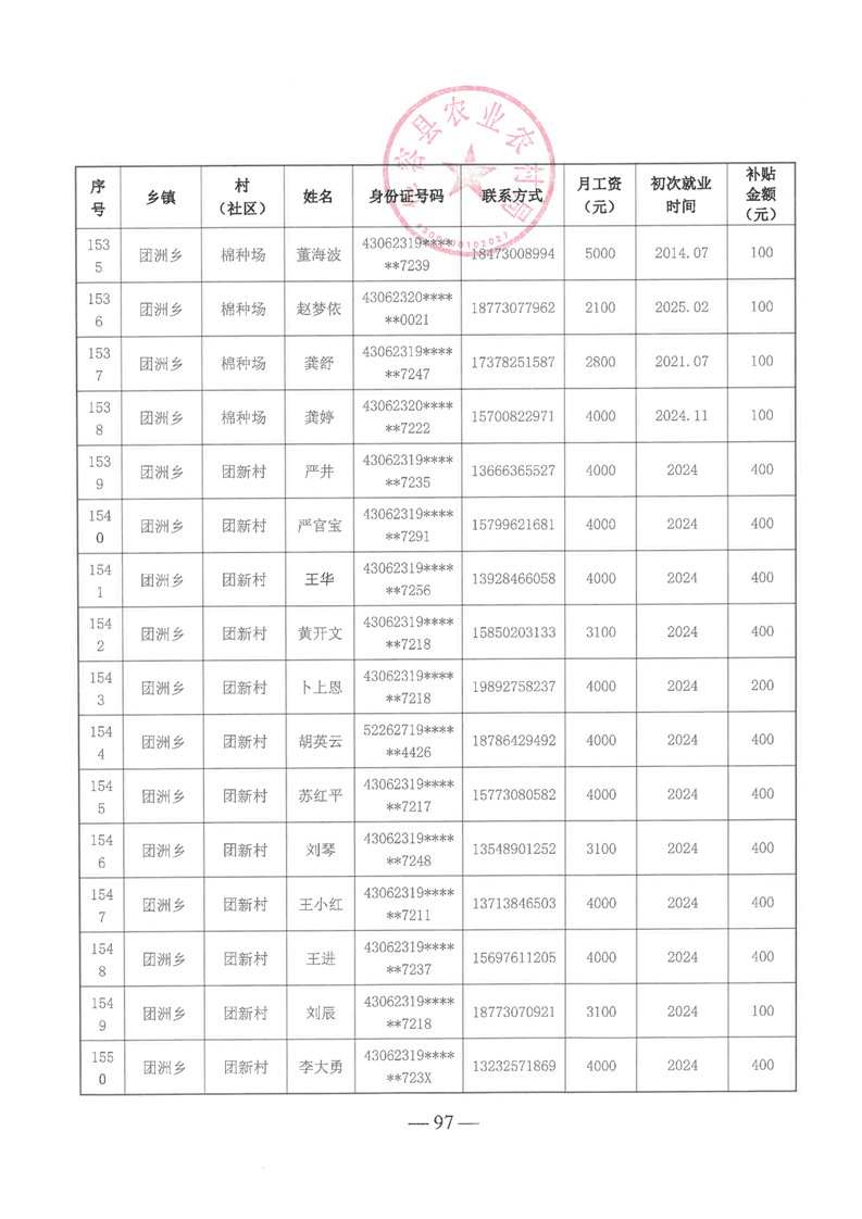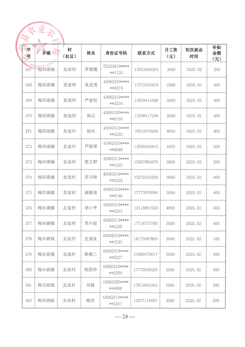 华容县2025年第一批外出务工建档立卡脱贫劳动力一次性交通补助名单公示
