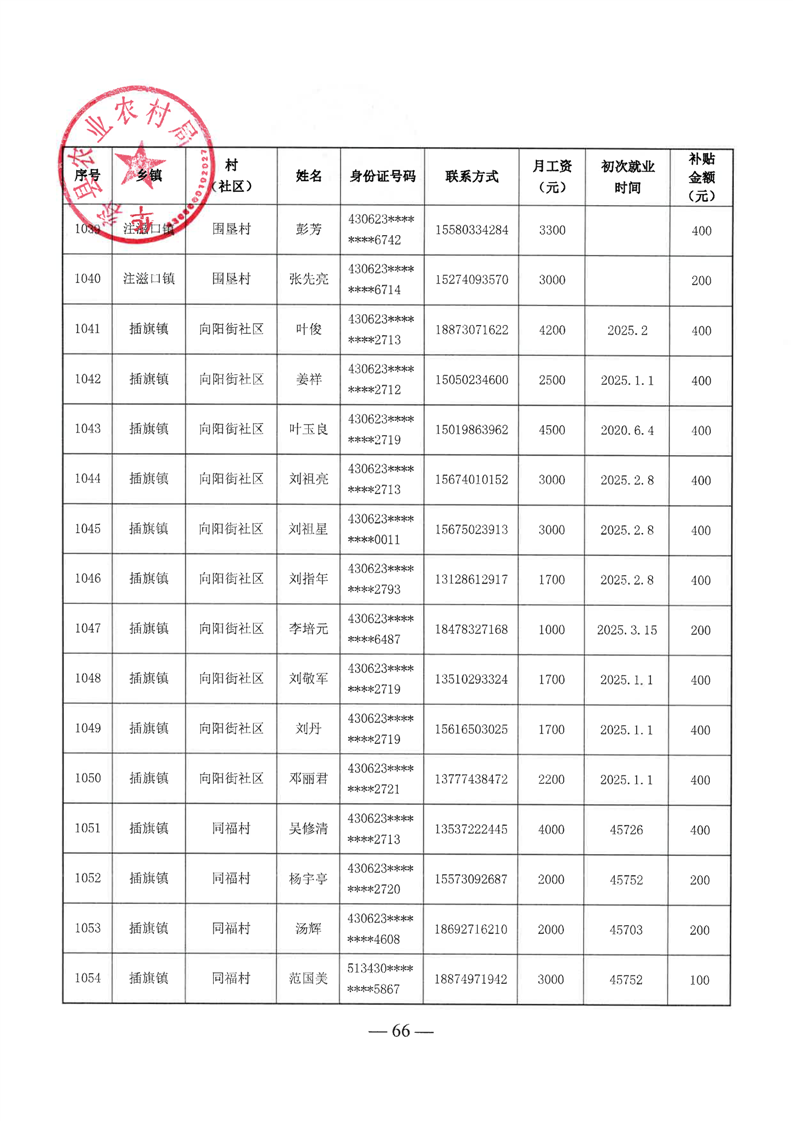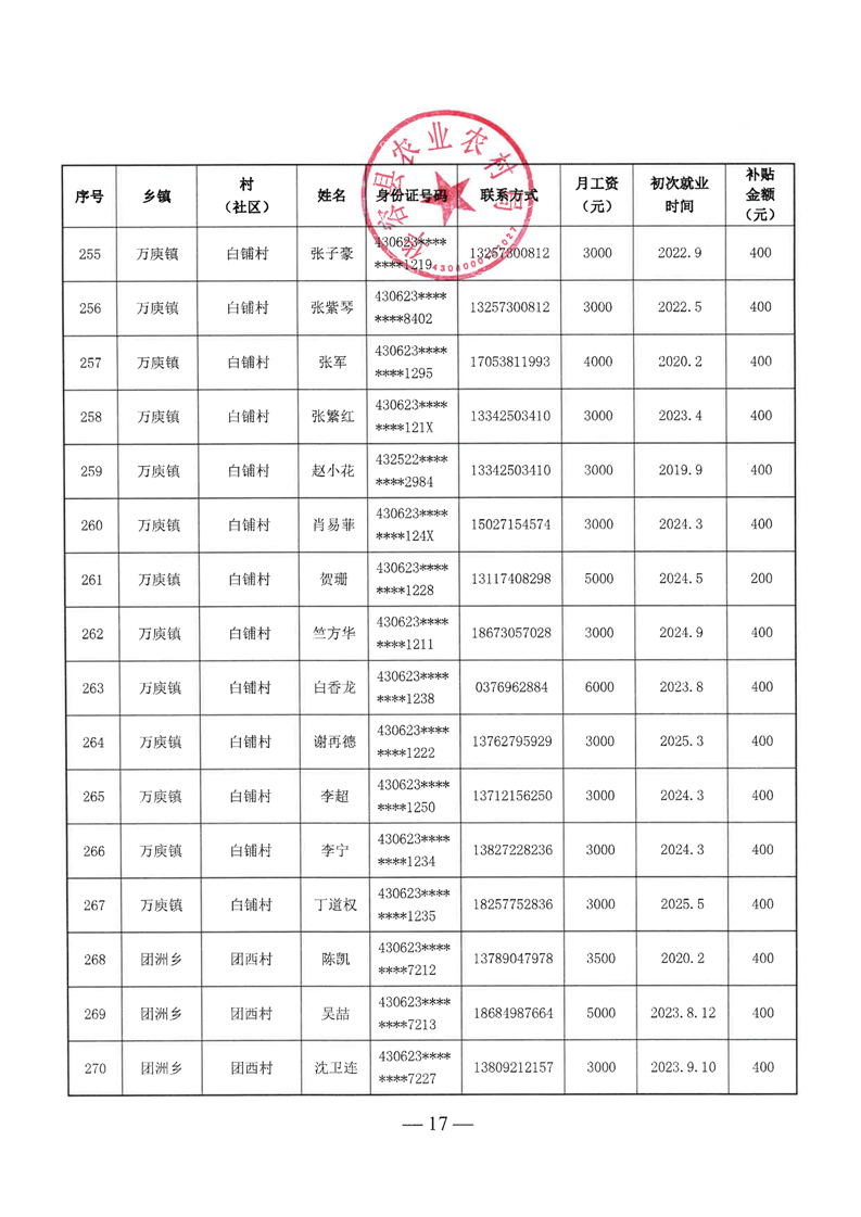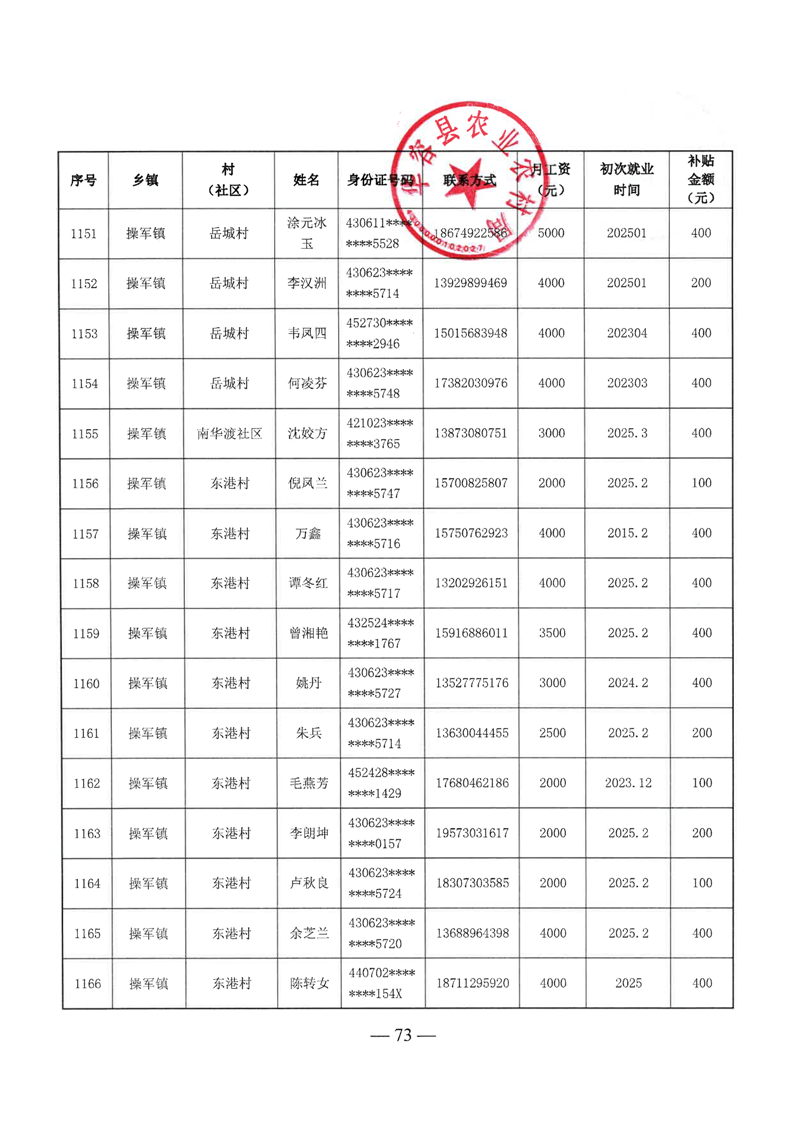 华容县2025年第二批外出务工建档立卡脱贫劳动力一次性交通补助名单公示