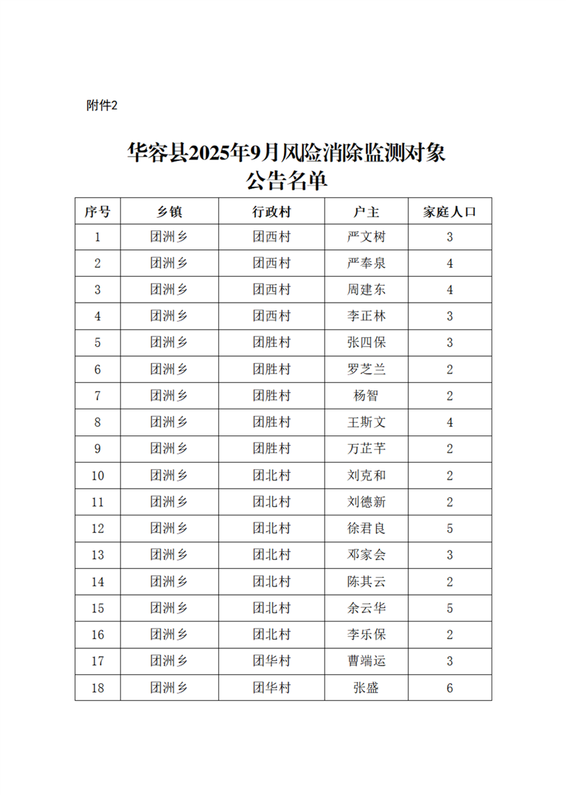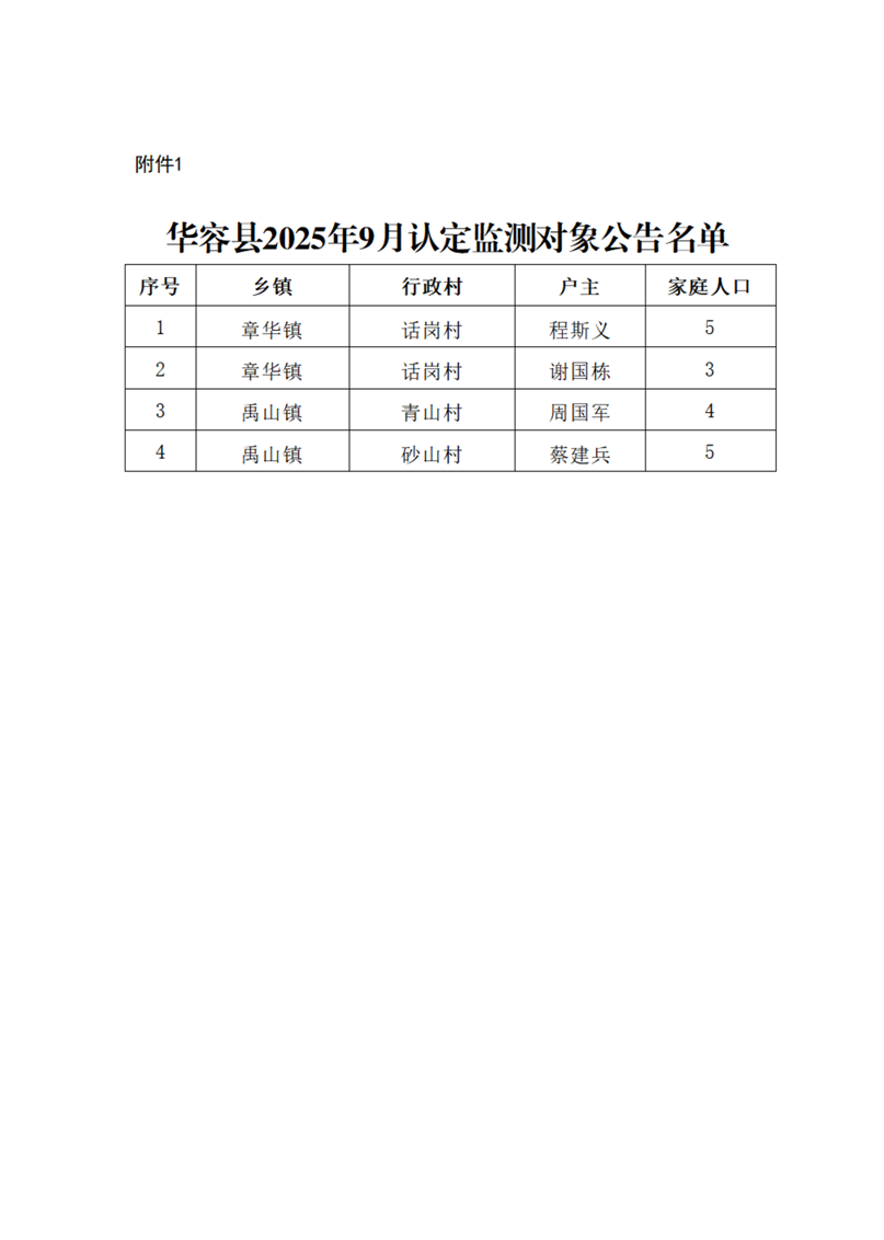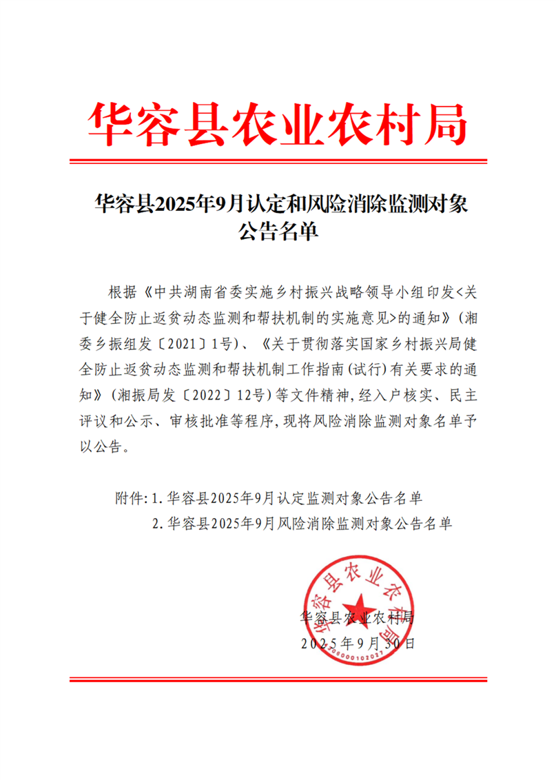 (2025.9.30)华容县2025年9月认定监测对象公告名单