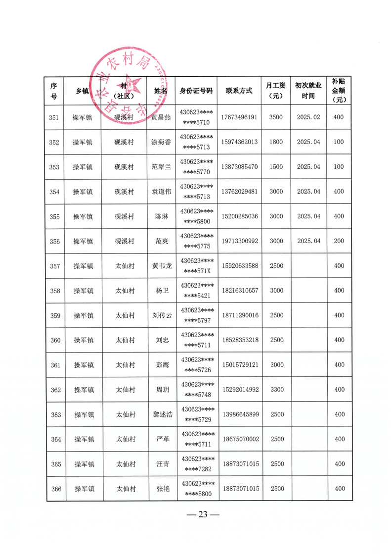 华容县2025年第三批外出务工建档立卡脱贫劳动力一次性交通补助名单公示
