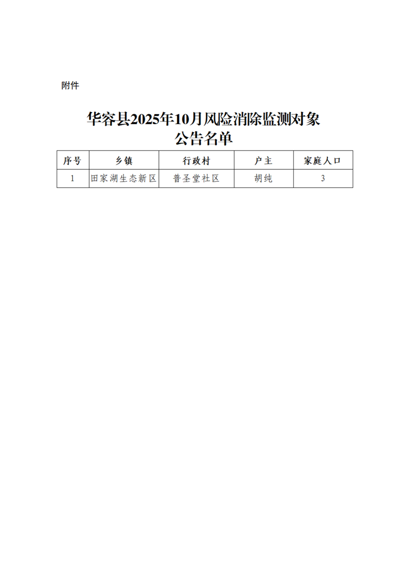 (2025.10.10)华容县2025年10月风险消除监测对象公告名单