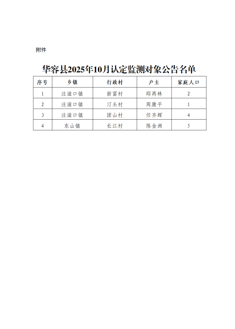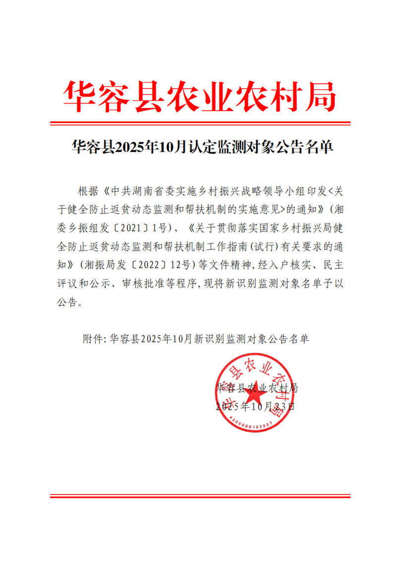 (2025.10.23)华容县2025年10月认定监测对象公告名单