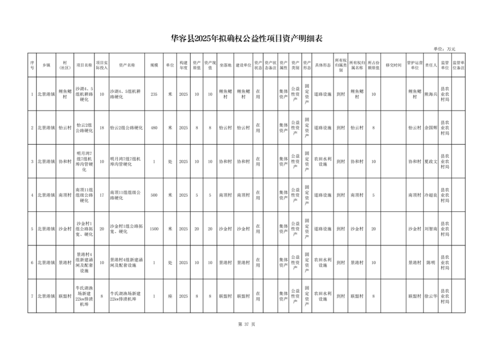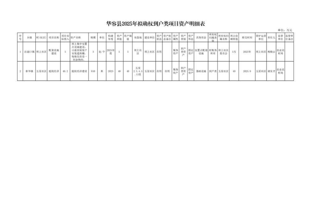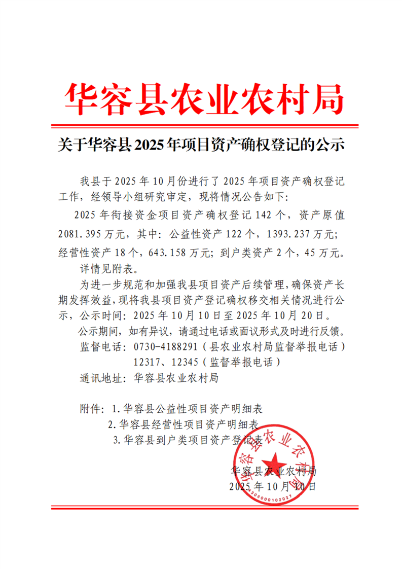 关于华容县2025年项目资产确权登记的公示