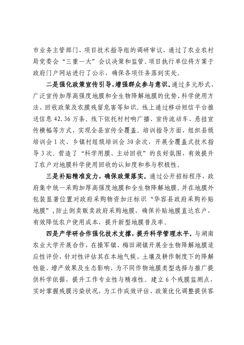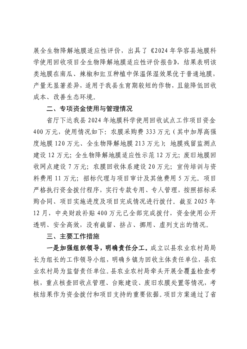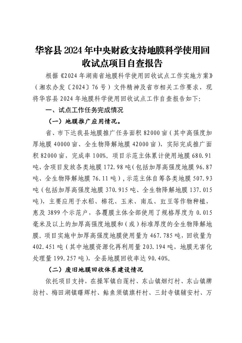 华容县2024年中央财政支持地膜科学使用回收试点项目自查报告