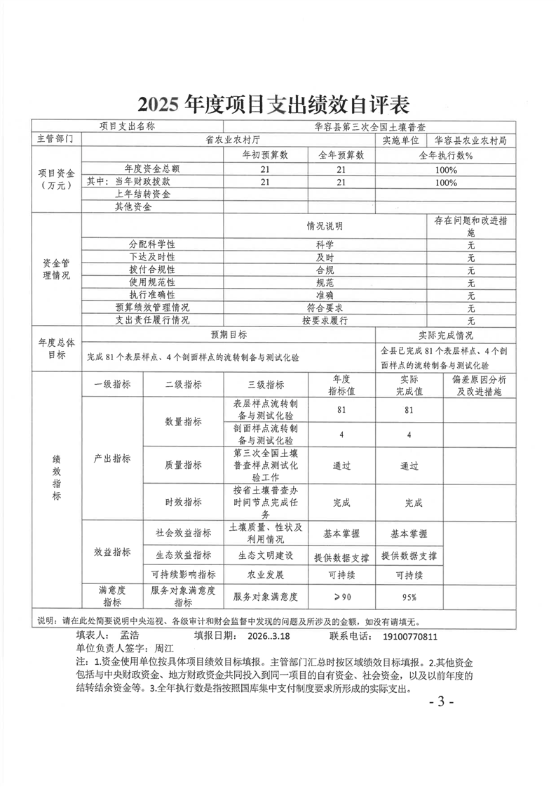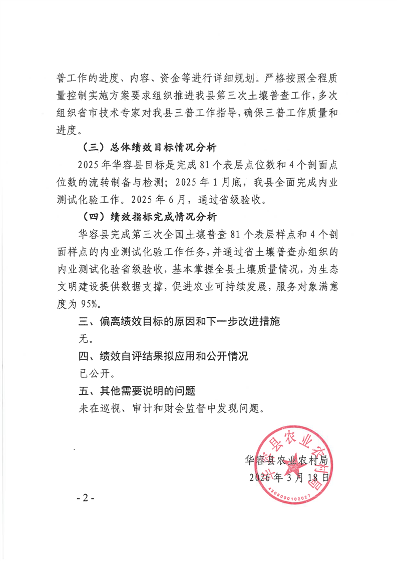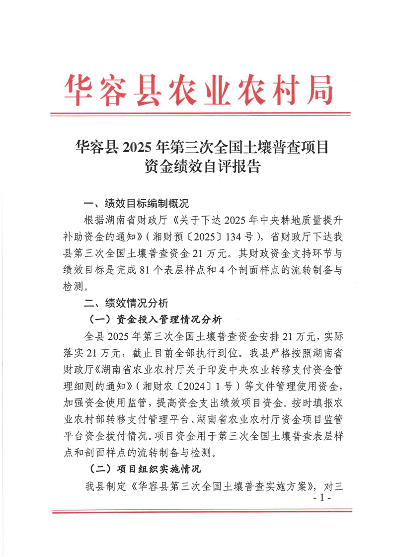 华容县2025年第三次全国土壤普查项目资金绩效自评报告
