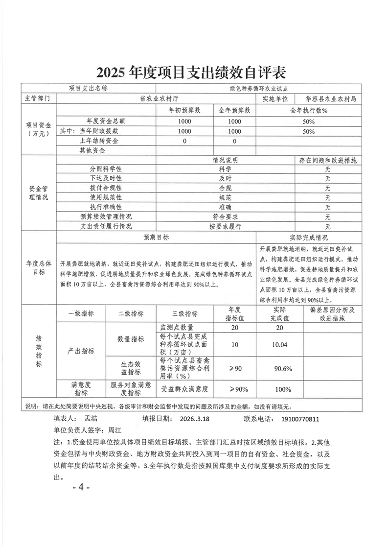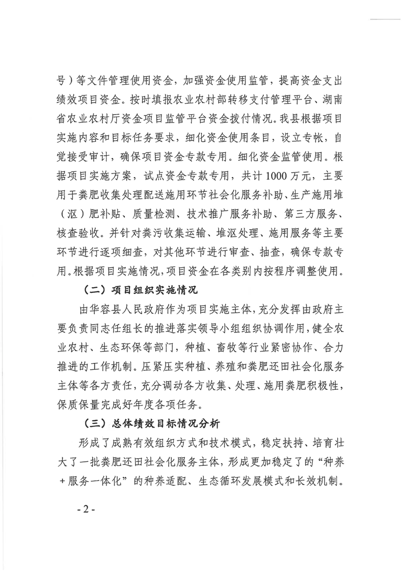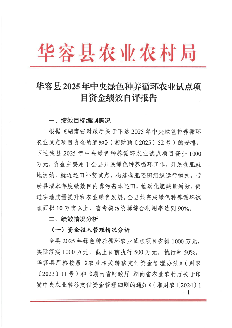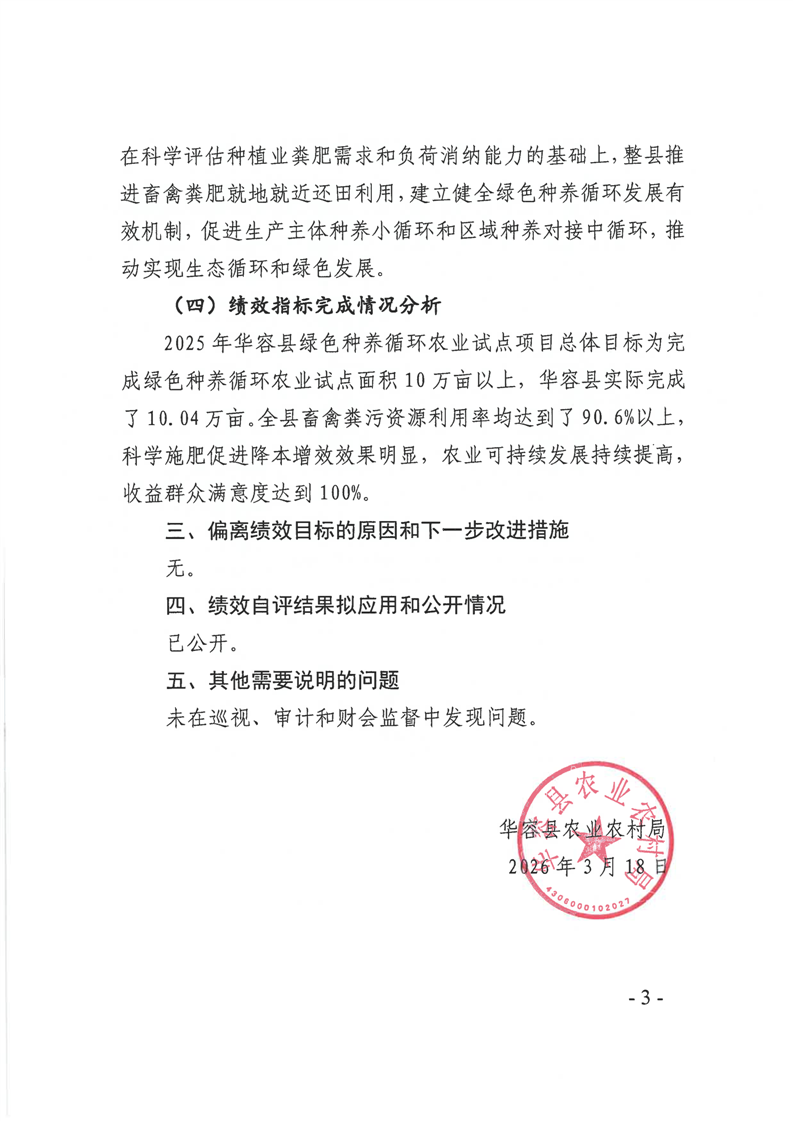 华容县2025年中央绿色种养循环农业试点项目资金绩效自评报告