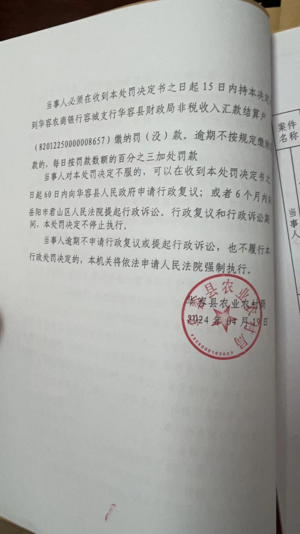 华容县农业农村局行政处罚决定书 华农(渔政)罚〔2024〕11号