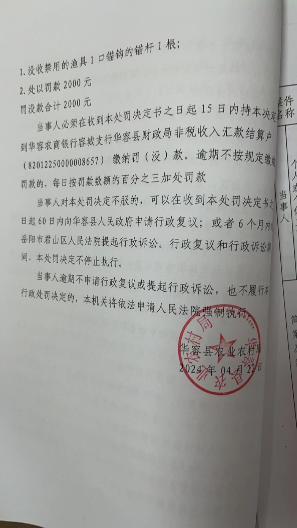 华容县农业农村局行政处罚决定书 华农(渔政)罚〔2024〕15号