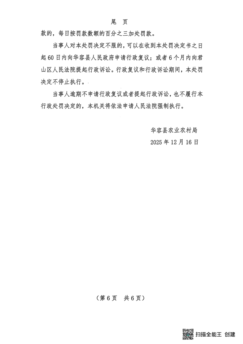 华容县农业农村局行政处罚决定书 华农(动监)罚〔2025〕10号