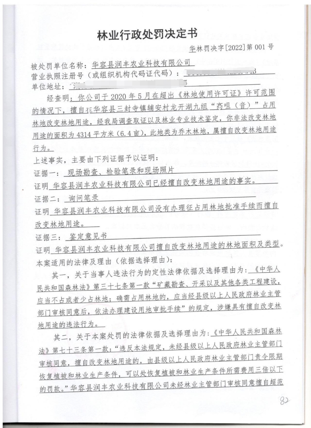 华容县润丰农业科技有限公司林业行政处罚决定书