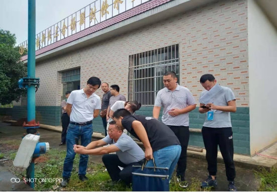 上图为2020年9月13日长江委、省、市水利主管部门领导赴万庾镇思源水厂督导我县取水工程(设施)整治工作