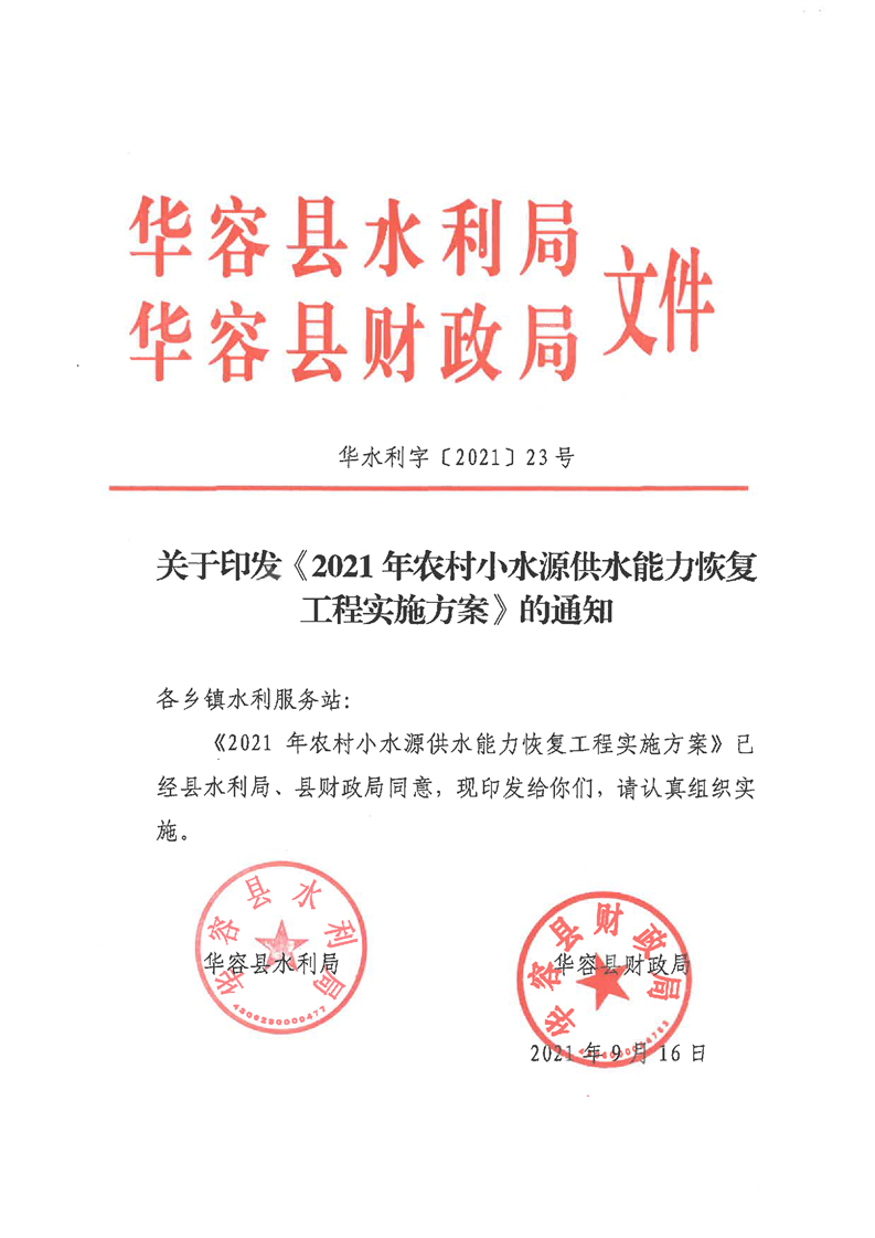 关于印发《2021年农村小水源供水能力恢复工程实施方案》的通知