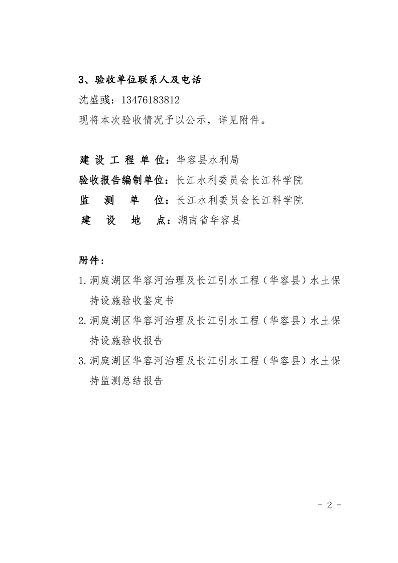 关于洞庭湖区华容河治理及长江引水工程(华容县)水土保持实施自主验收情况公示