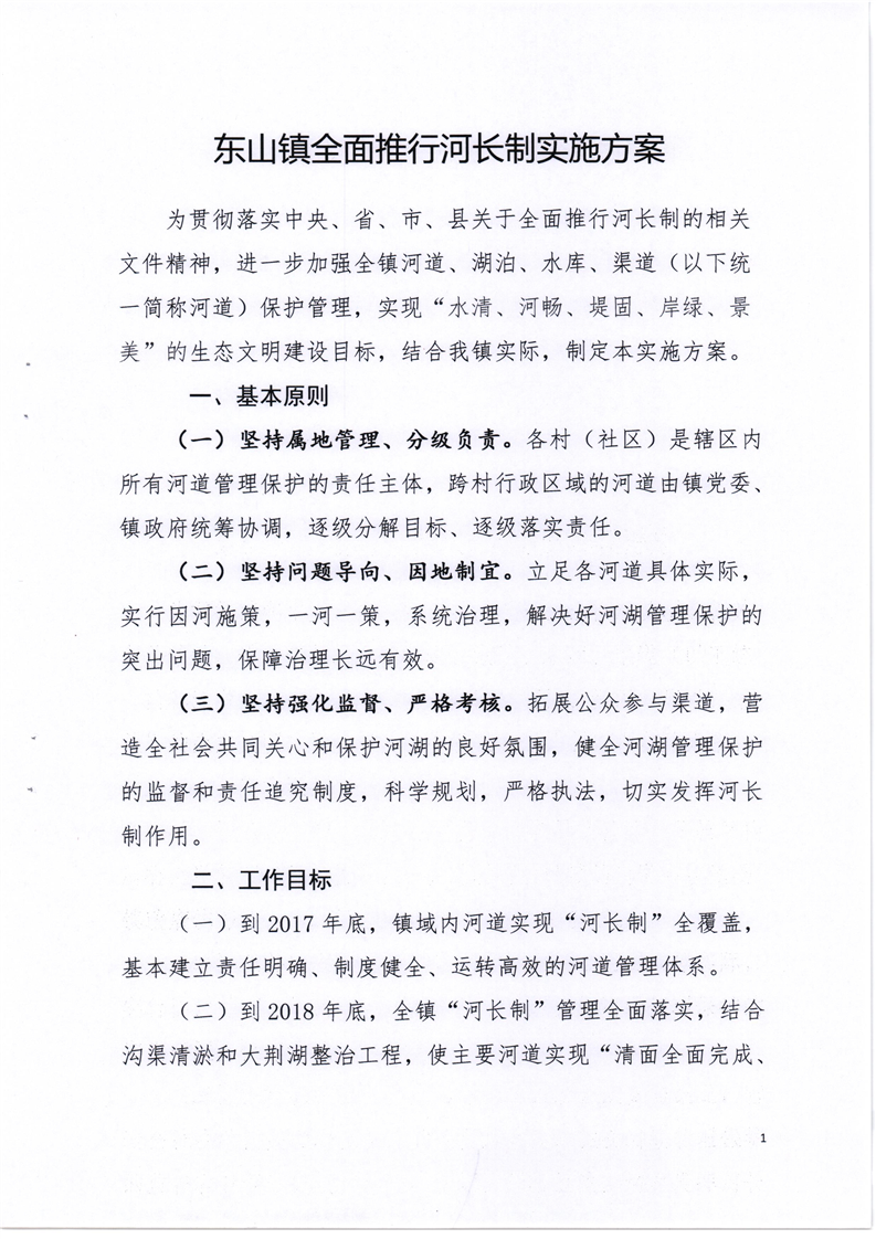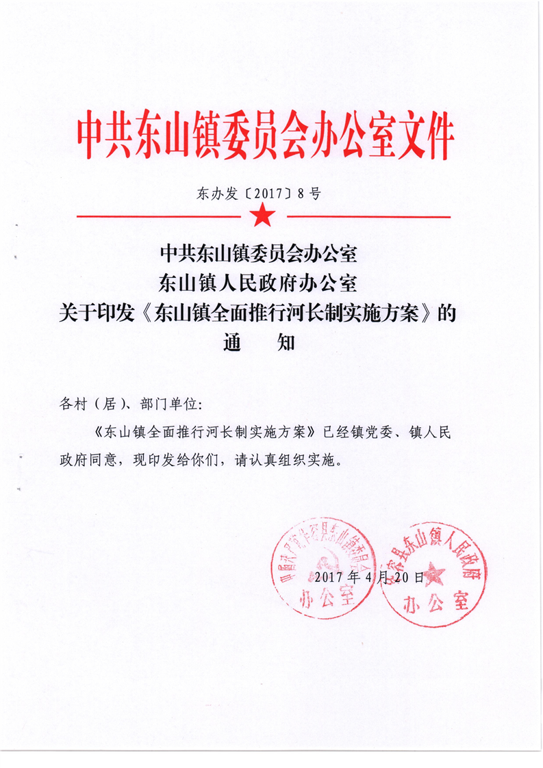 关于印发《东山镇全面推行河长制实施方案》的通知