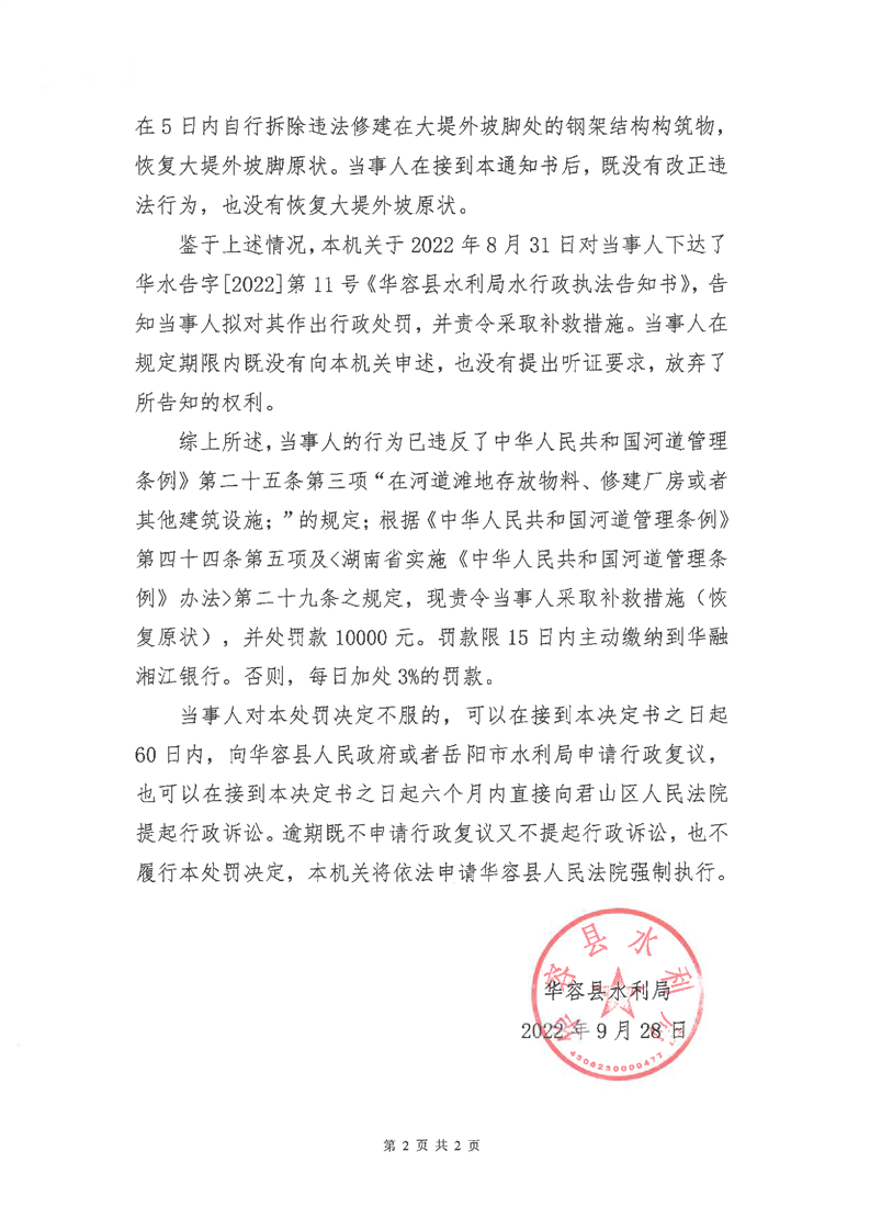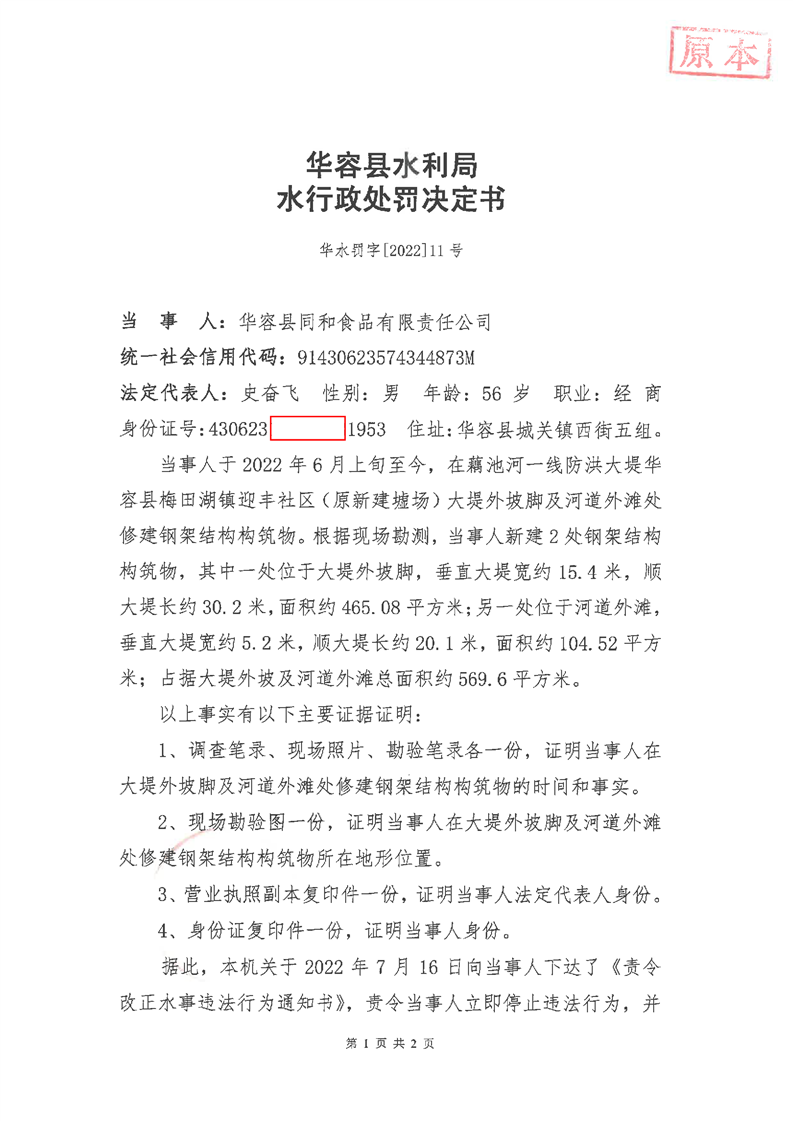 华容县同和食品有限责任公司违法修建钢架结构构筑物案
