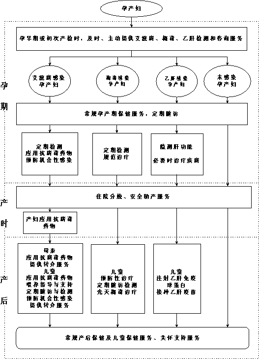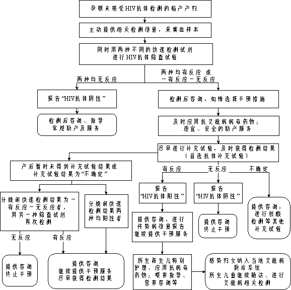 (1)艾滋病的检测。各医疗卫生机构在孕产妇初次接受孕产期保健时,应该主动提供1次免费艾滋病病毒抗体筛查服务。