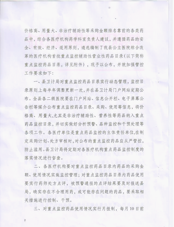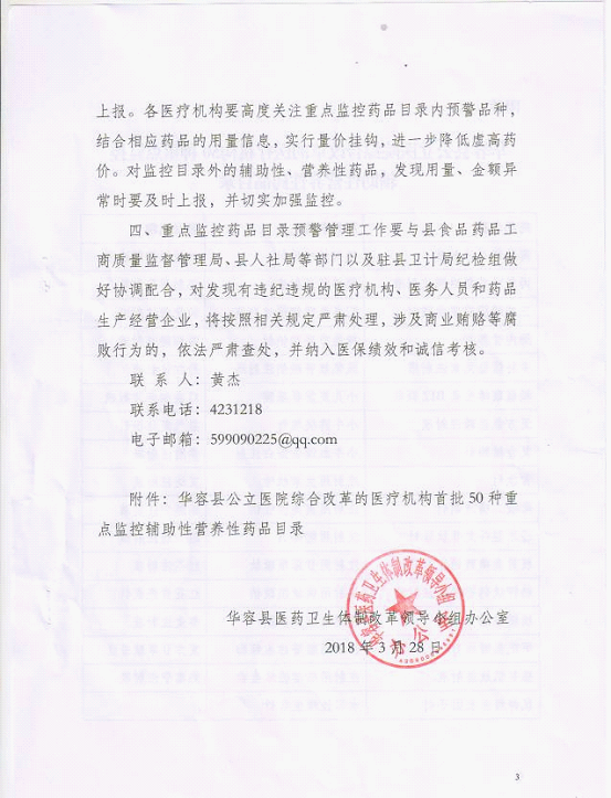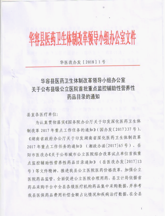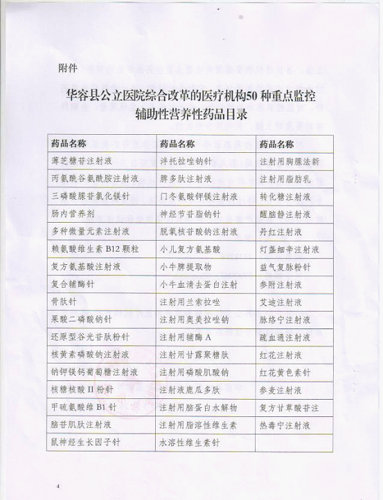 华容县医药卫生体制改革领导小组办公室关于公布县级公立医院首批重点监控辅助性营养性药品目录的通知