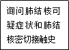 二、如上述信息都选“否”,筛查结束。如有任意一条选择为“是”,若结核菌素皮肤试验筛查(PPD)为强阳性,则需到定点医院进行胸片检查。