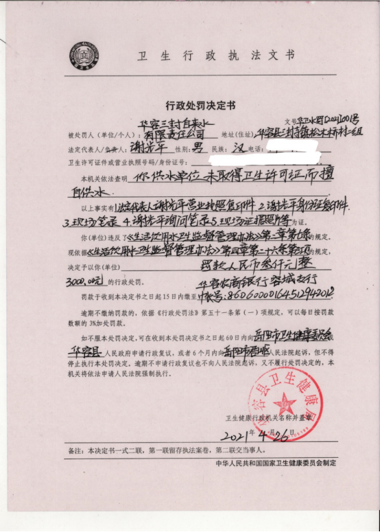 2021水罚字行政处罚决定书公示