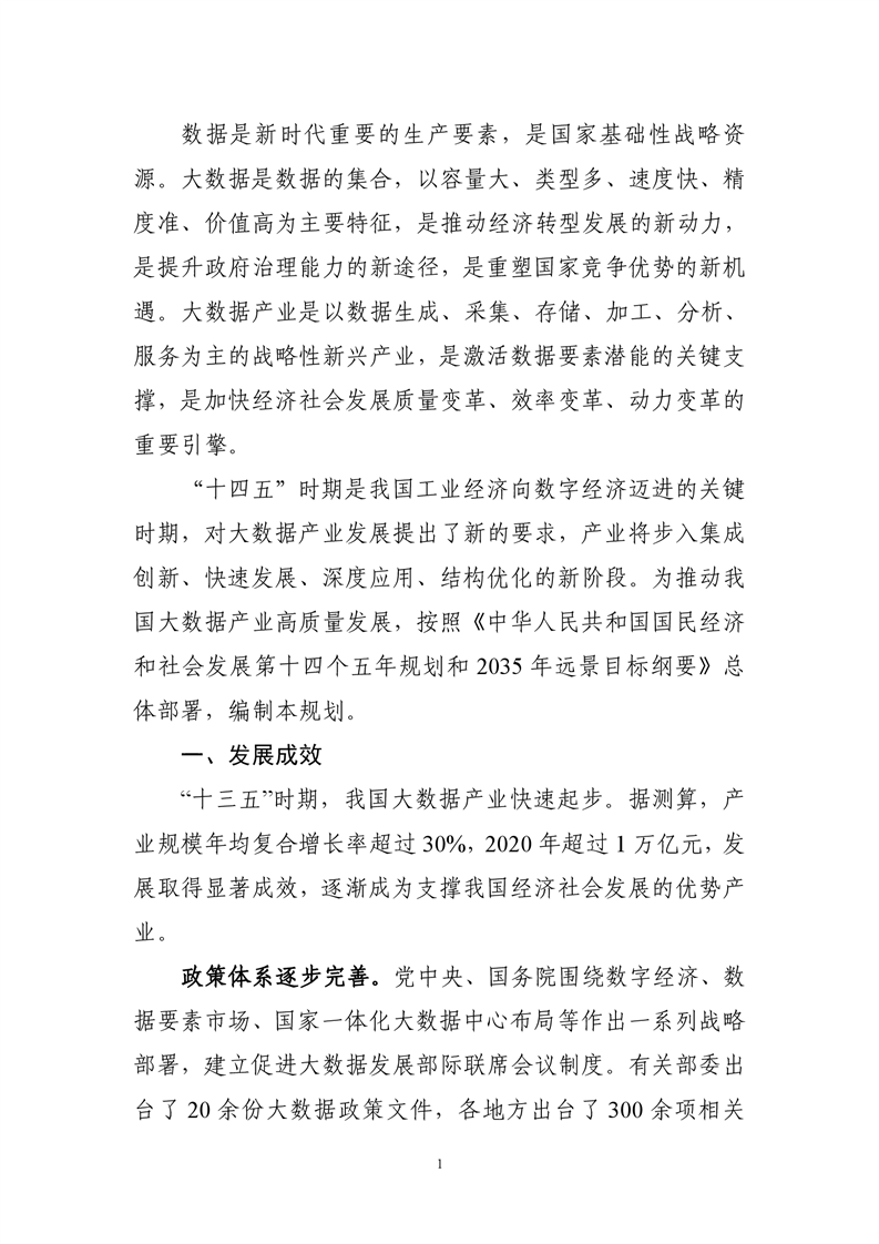 “十四五”大数据产业发展规划