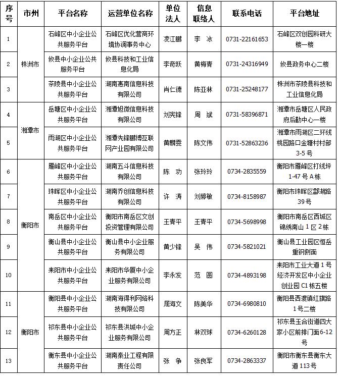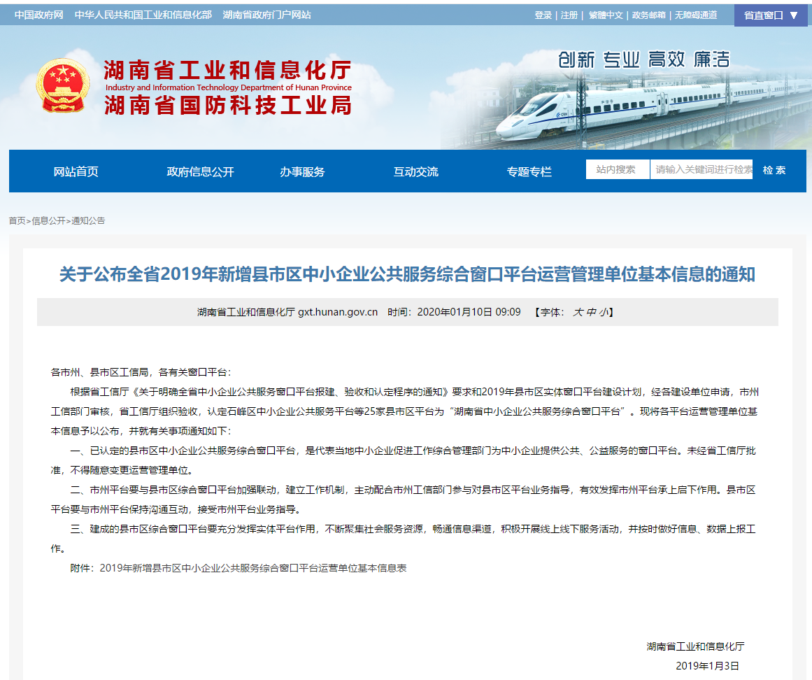 关于公布全省2019年新增县市区中小企业公共服务综合窗口平台运营管理单位基本信息的通知