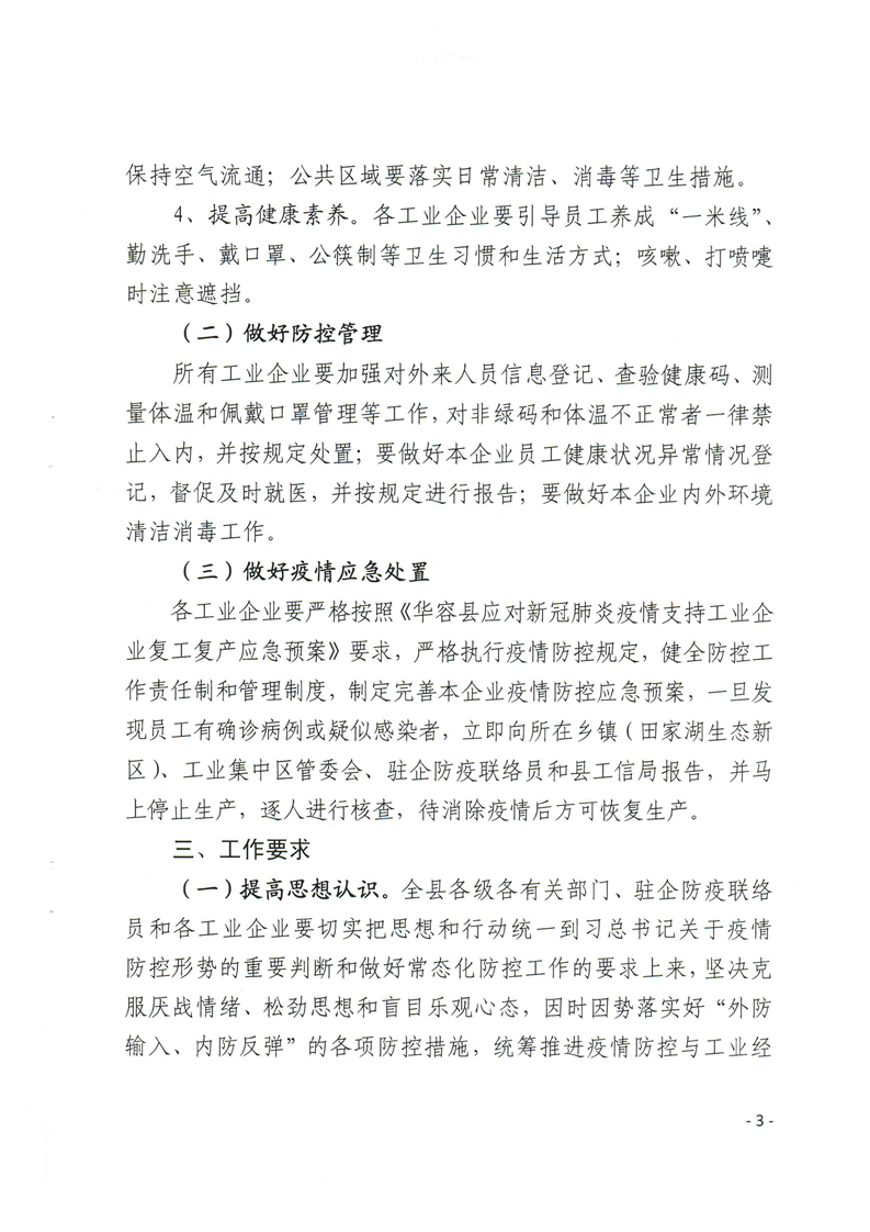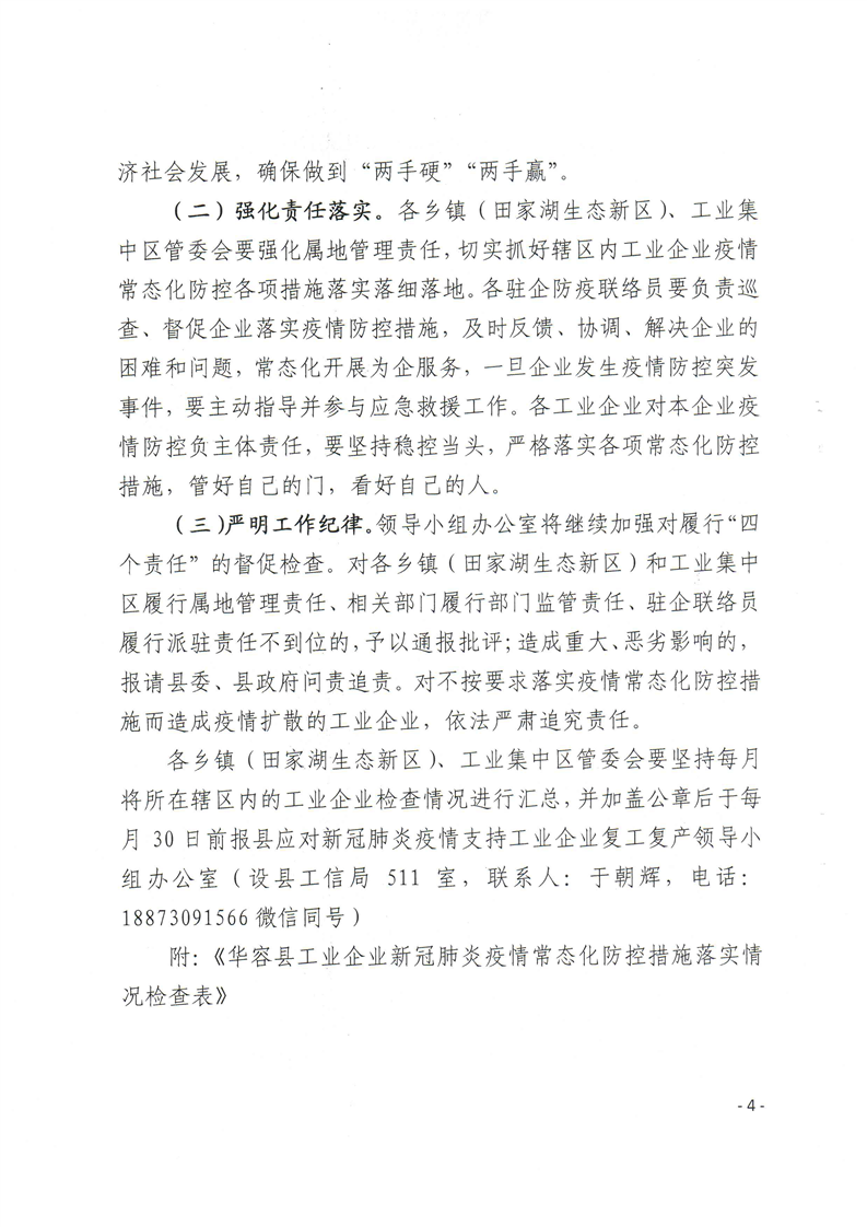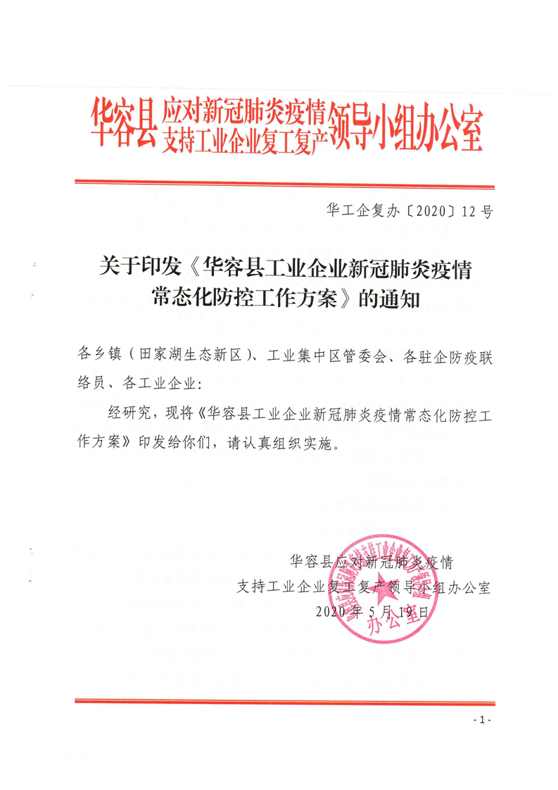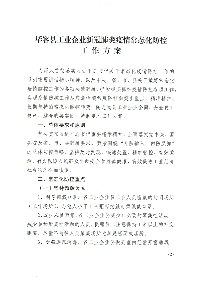 关于印发《华容县工业企业新冠肺炎疫情常态化防控工作方案》的 通知