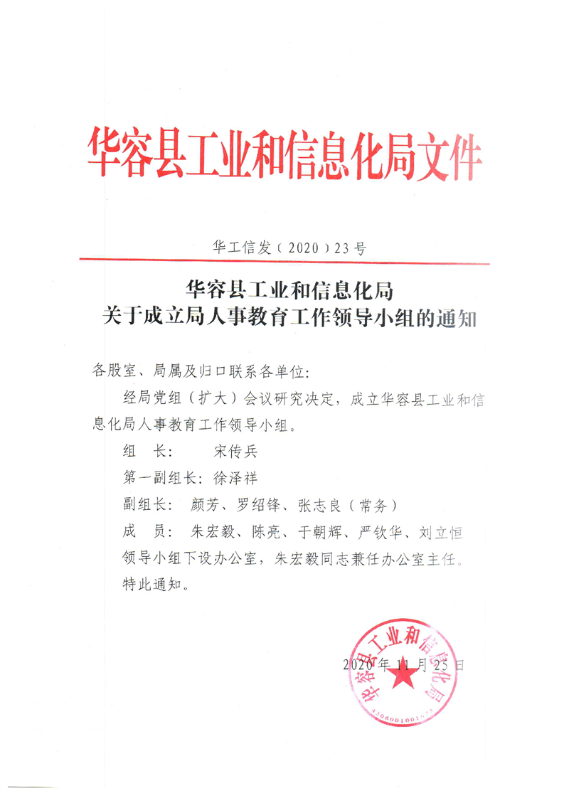 华容县工业和信息化局关于成立局人事教育工作领导小组的通知