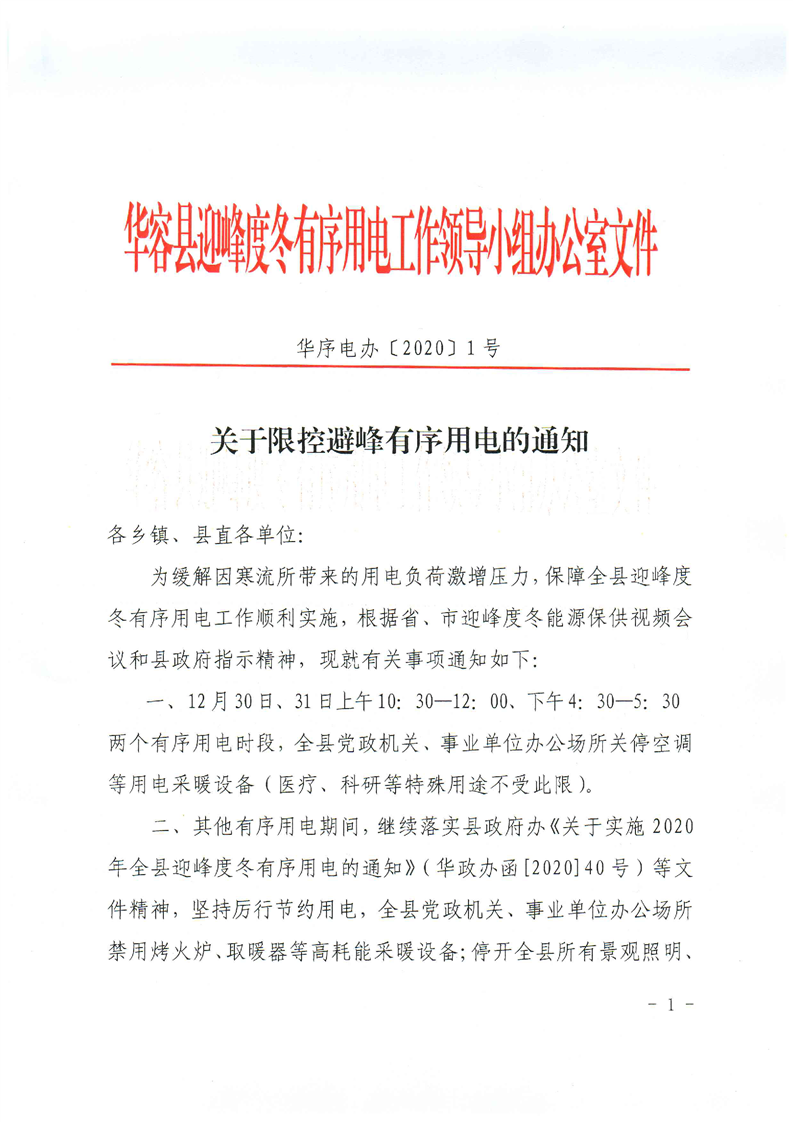 关于限控避峰有序用电的通知