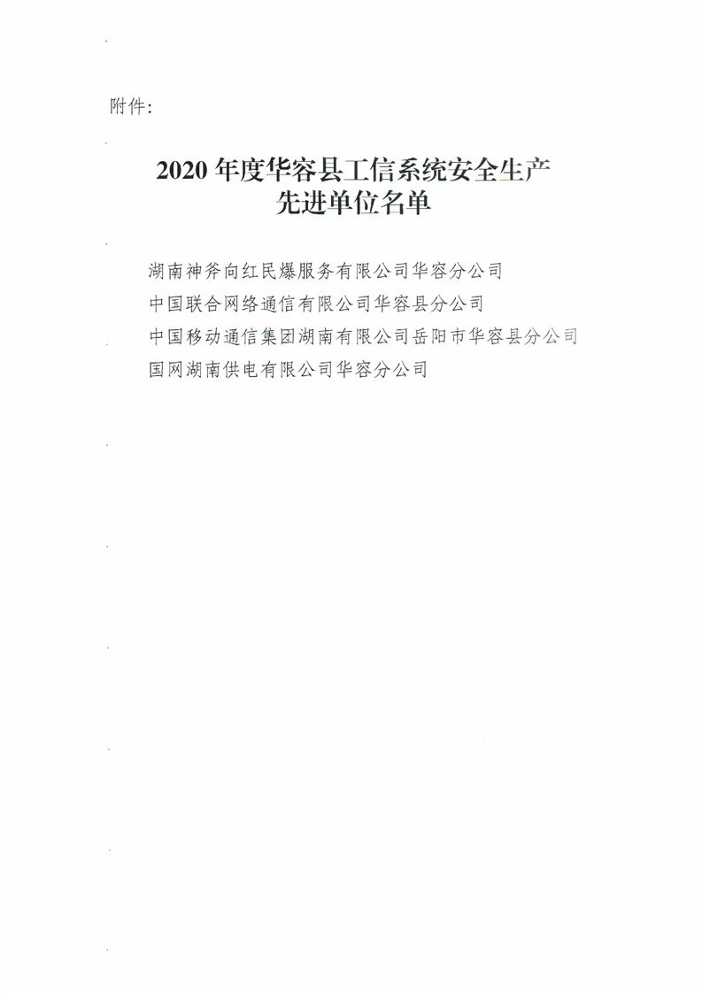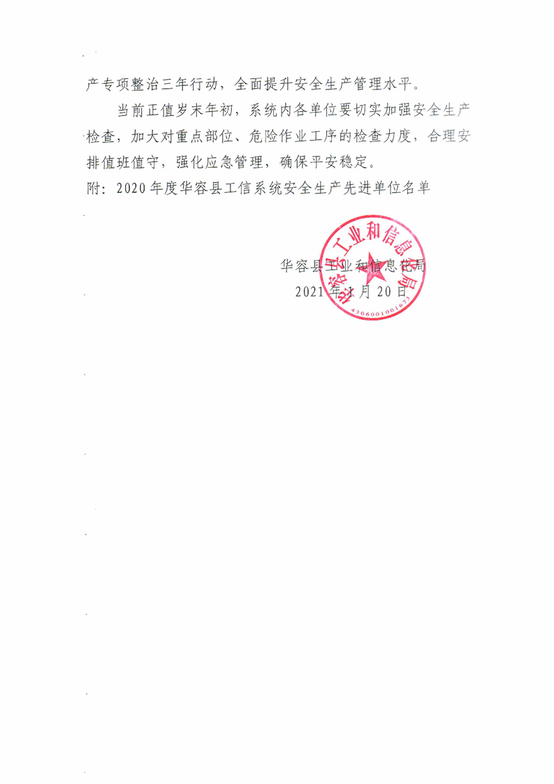 关于表扬2020年度县工信系统安全生产先进单位的通知